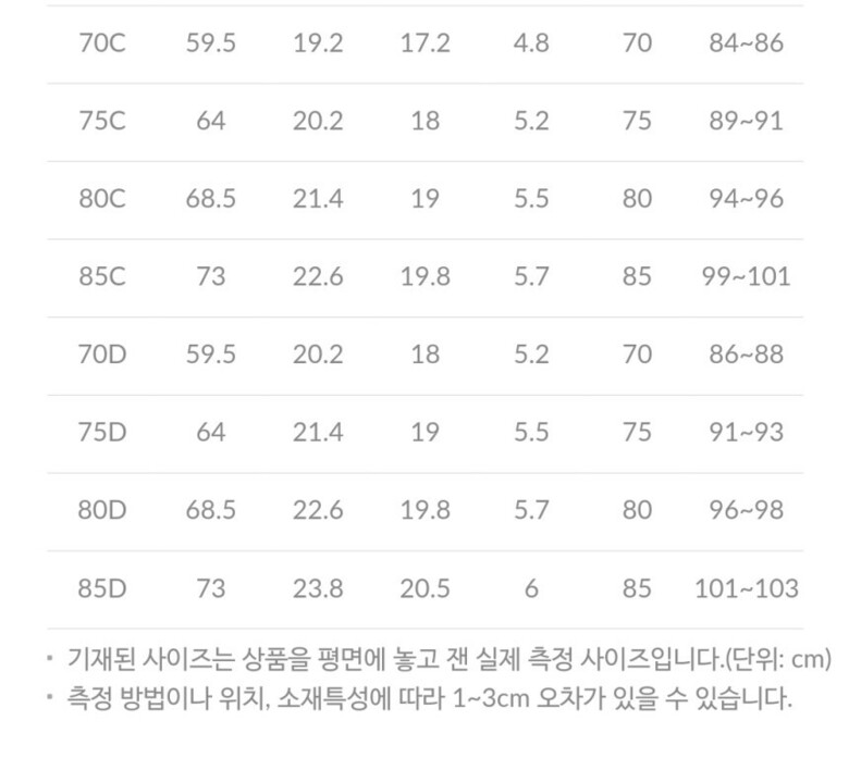 사이즈 : 75A,80A,85A,75B,80B,85B,80C,85C