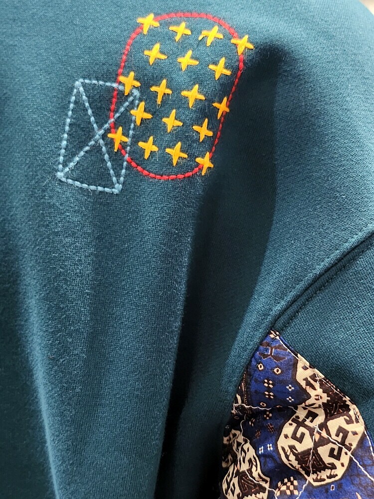 새로운 스타일의 패치워크 퀼팅 맨투맨 컬렉션을 소개합니다. 전면부 우측 하단과 슬리브 후면에 퀼팅 기법을 이용하여 다양한 무늬의 패치를 부착하여 포인트를 주었습니다. 후면 상단과 하단에도 자수 처리를 통해 포인트를 준 디자인으로, 색다른 매력을 느낄 수 있습니다. 또한, 기모 안감을 사용하여 보온성을 갖췄습니다. 화려한 무늬가 매력적인 패치워크 퀼팅 맨투맨은 세 가지 컬러로 만나보실 수 있습니다.