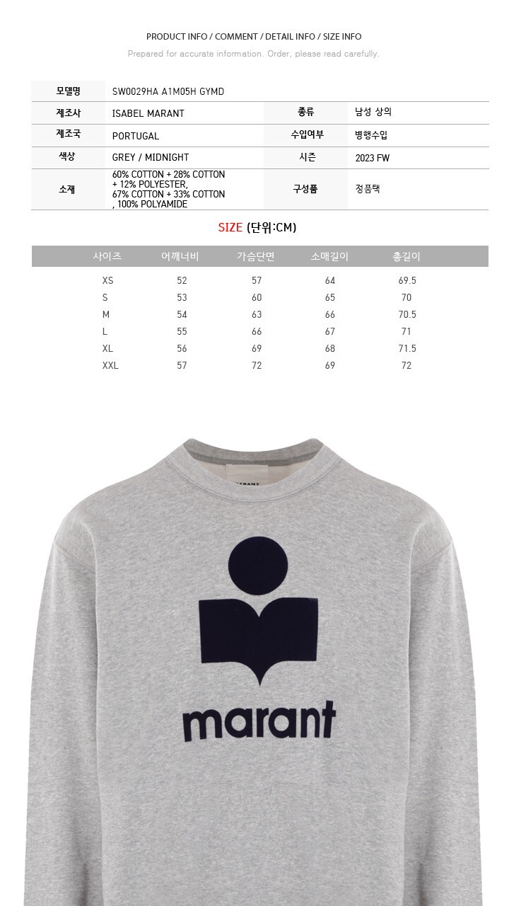 이자벨마랑 23FW MIKOY 로고 맨투맨 그레이미드나잇 SW0029HA A1M05H GYMD