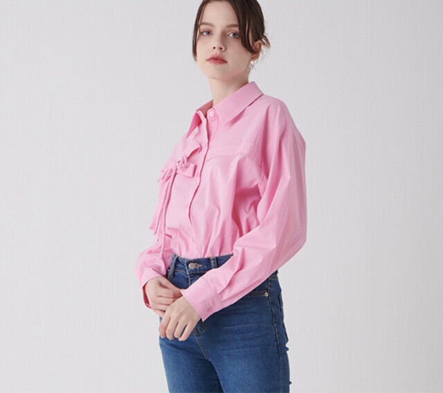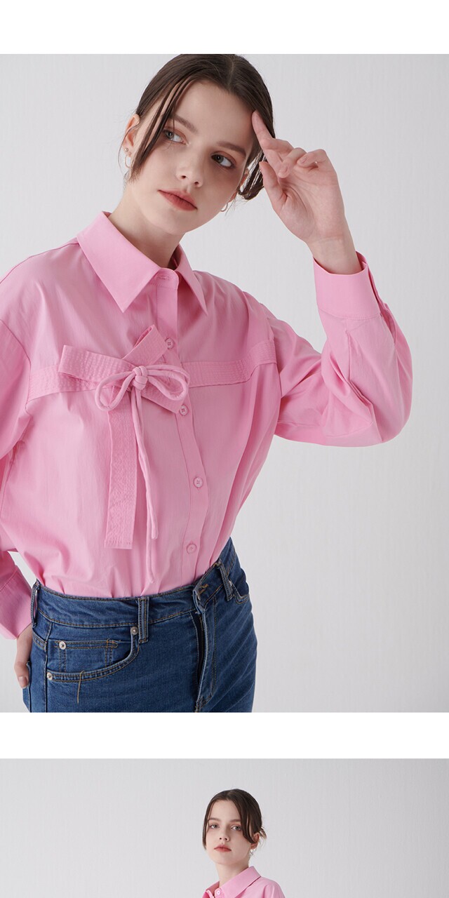 샤틴 리본 디테일 오버핏 셔츠 S223b254