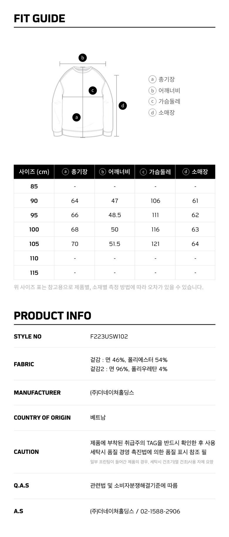 NFL의 가장 기본적인 스탠다드 핏의 맨투맨, 부드러운 터치감의 CP쭈리 원단을 사용해 우수한 착용감 제공