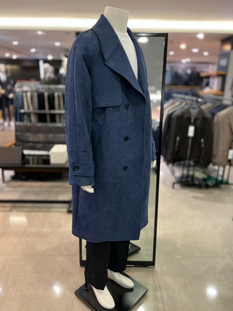 블루 스웨이드 건플랩 오버핏 트렌치코트