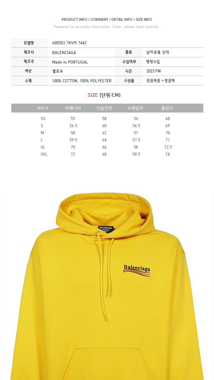 발렌시아가 23FW 웨이브 로고 후드티 옐로우 600583 TKVI9 7442