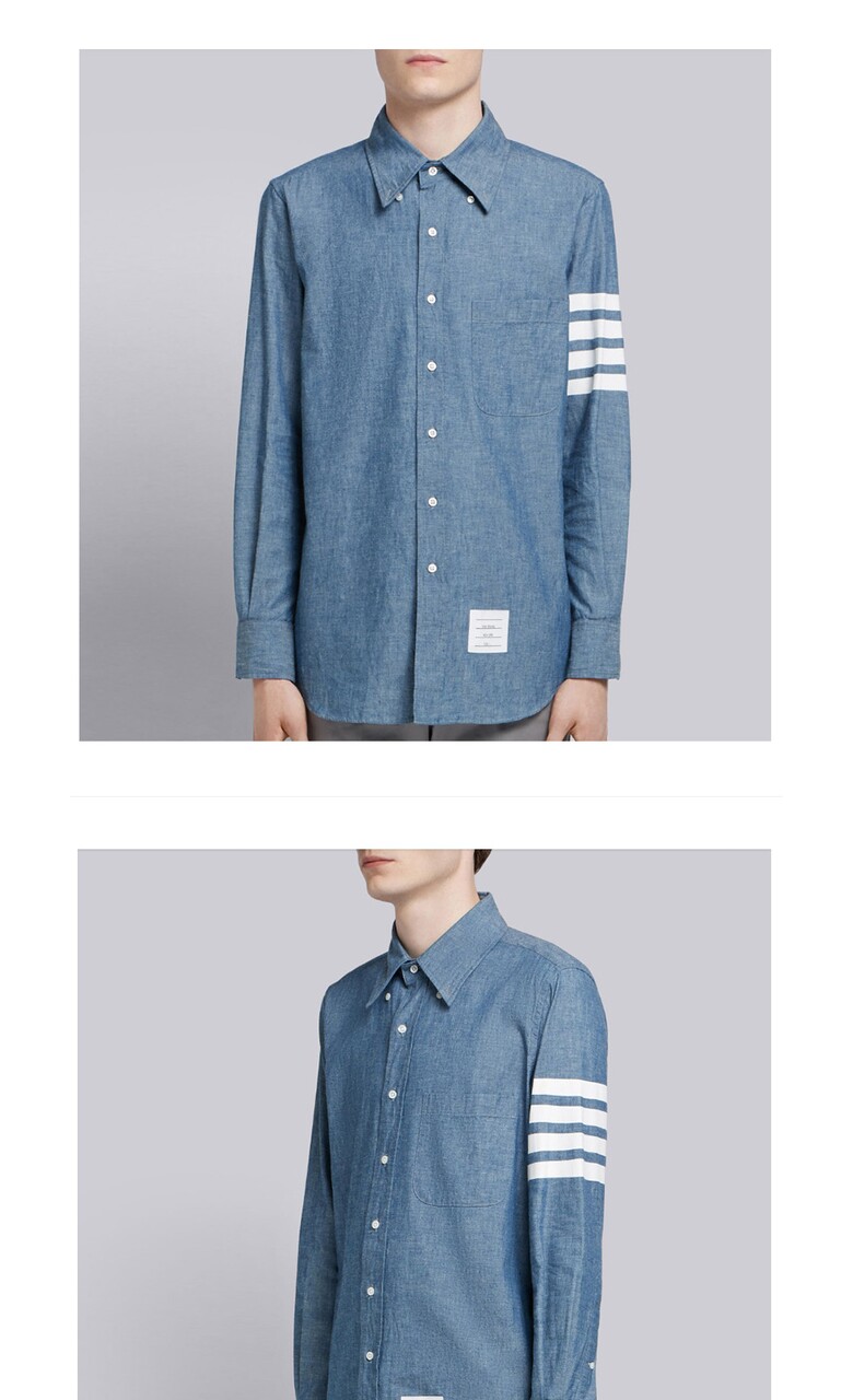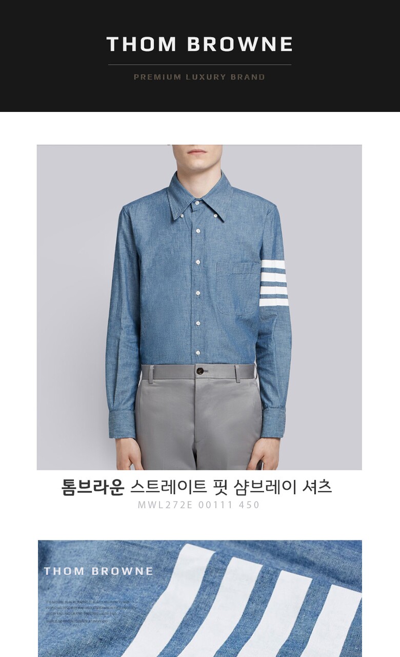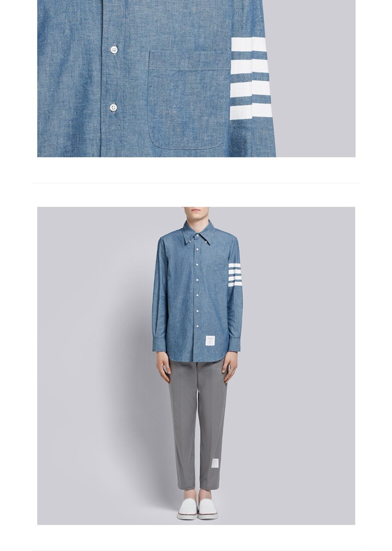 [THOM BROWNE] 스트레이트 핏 샴브레이 셔츠 MWL272E 00111 450