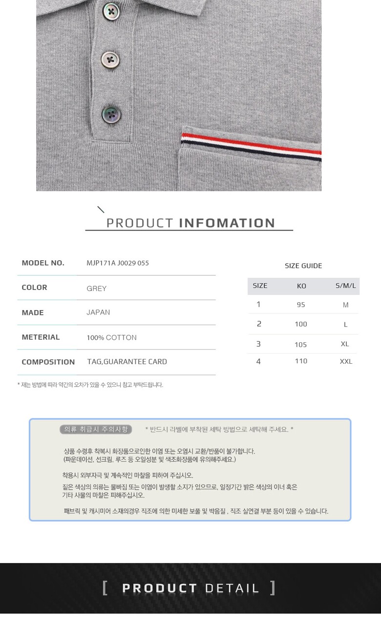 [THOM BROWNE] 삼선포켓 PK 티셔츠 MJP171A J0029 055