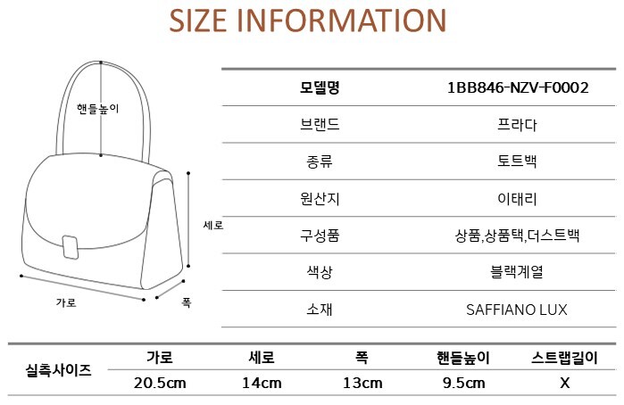 #리본즈코리아 #1BB846-NZV-F0002 #[명품] #프라다 #사피아노 #여성 #토트백 #/ #1BB846 #NZV #F0002 #공용 #가방/핸드백