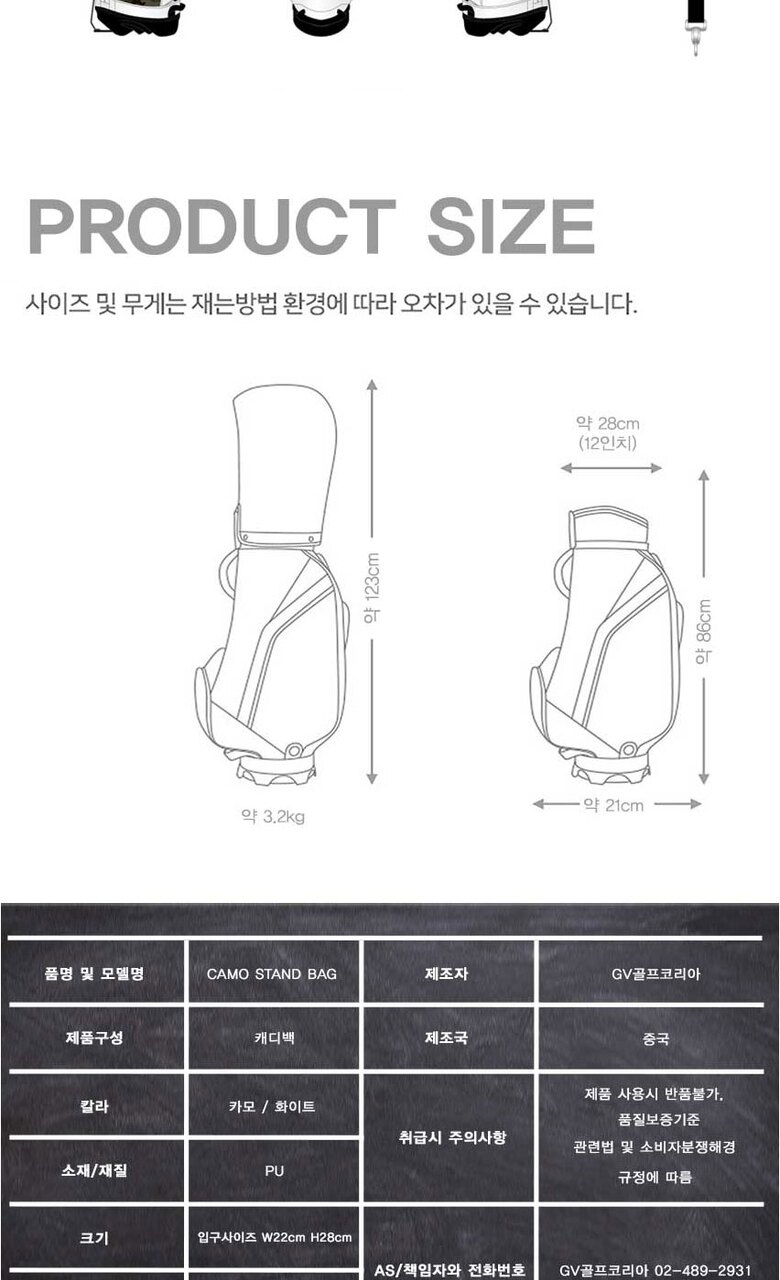 | 9. A/S 책임자와 전화번호 | 지브이골프코리아 02-489-2931 |