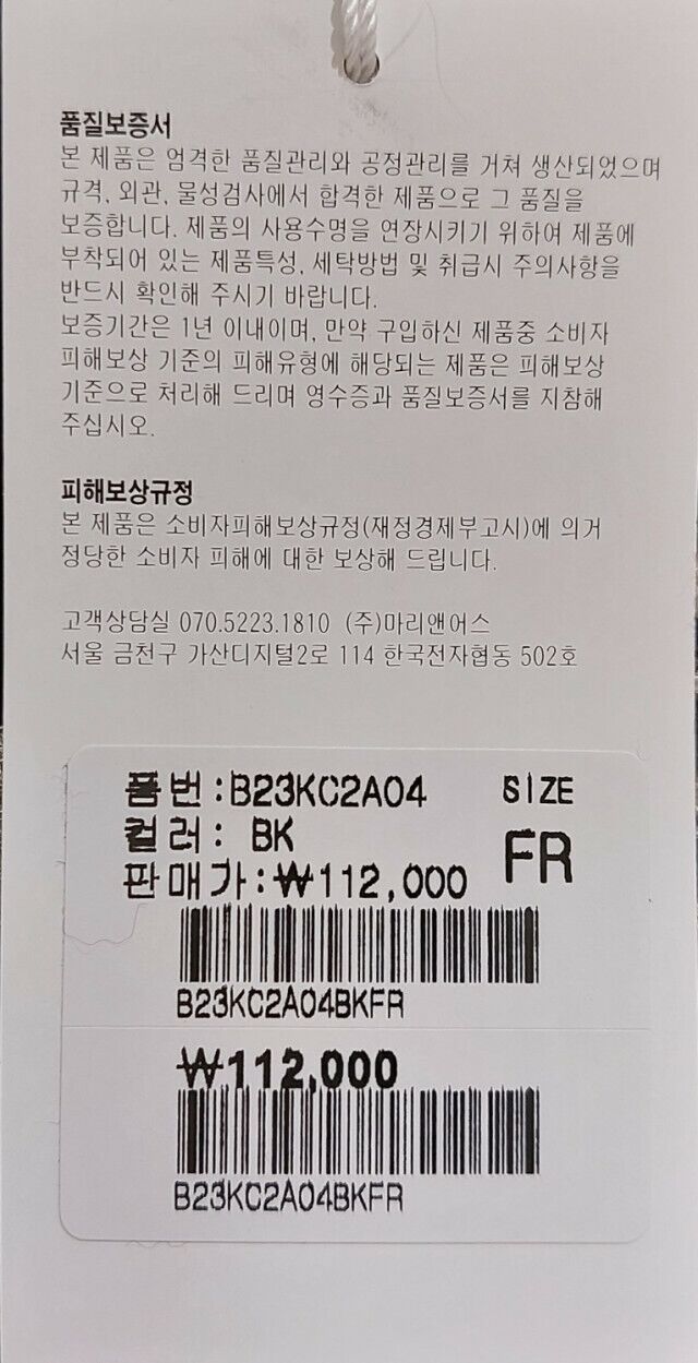 | 7. 세탁방법 및 취급시 주의사항 | 상세페이지 참조 |
