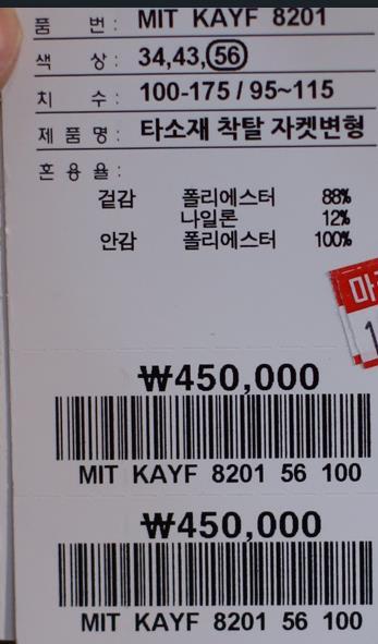 소재:폴리에스터 88%/나일론 12%/ 충전재:폴리에스터 100%