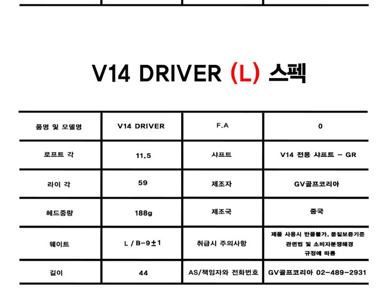 | 1. 품명 및 모델명 | 지브이투어 V14 드라이버 |