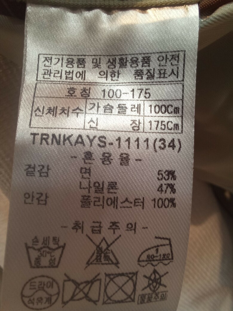 | 1. 제품 소재 (섬유의 조성 또는 혼용률을 백분율로 표시, 기능성인 경우 성적서 또는 허가서) | 겉감:면 53%, 나일론 47% / 안감:폴리에스테르 100% / 면 53%, 나일 |