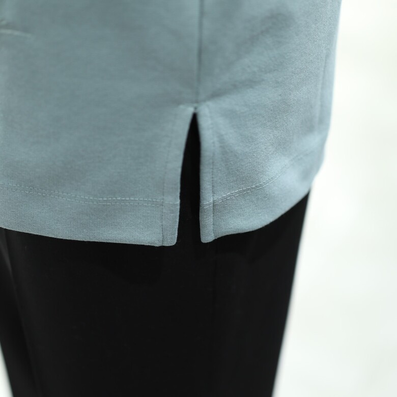 · 앞판 절개 및 밑단 컬러 매칭 로고 자수 디테일