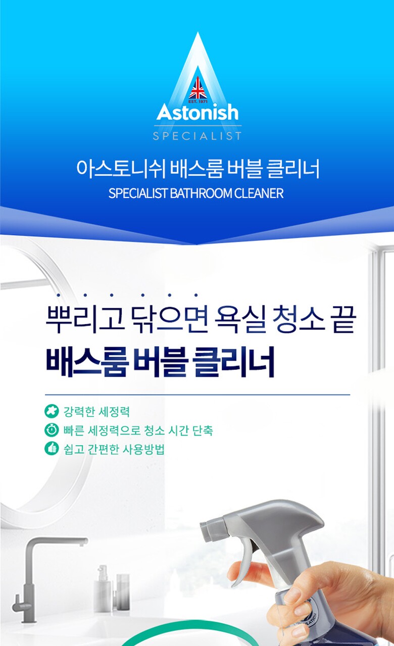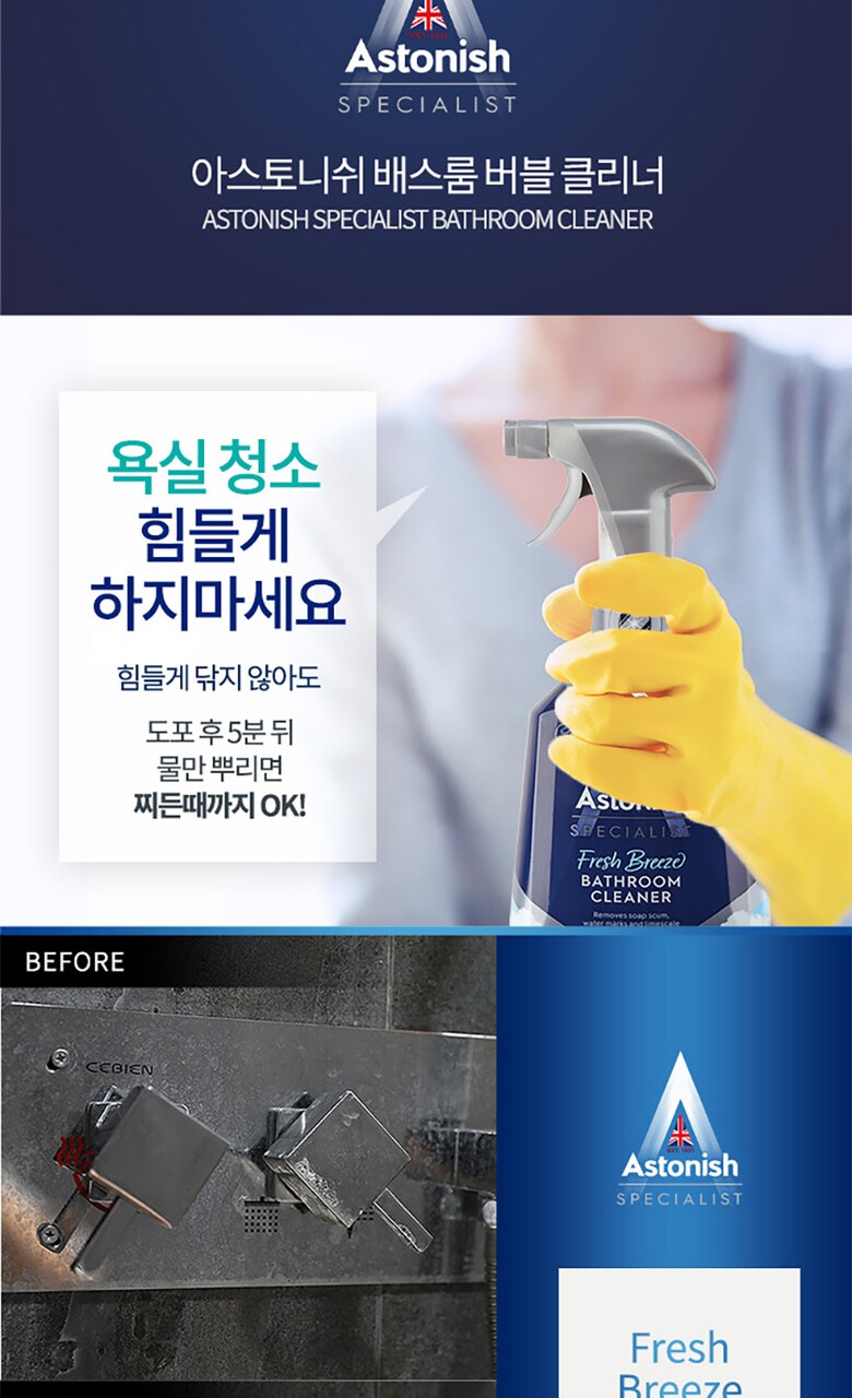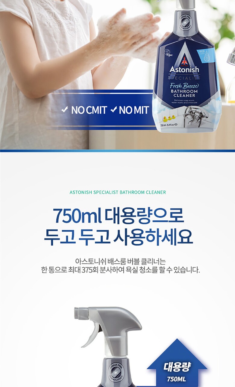 스벅쿠폰 증정 [아스토니쉬] 배스룸 클리너 욕실 청소 세제 세정제 750ml
