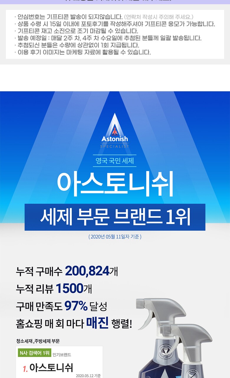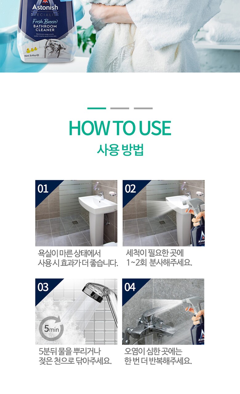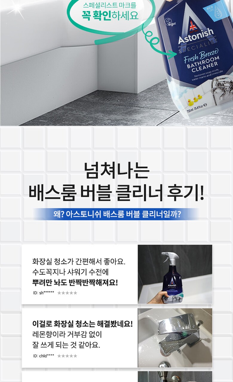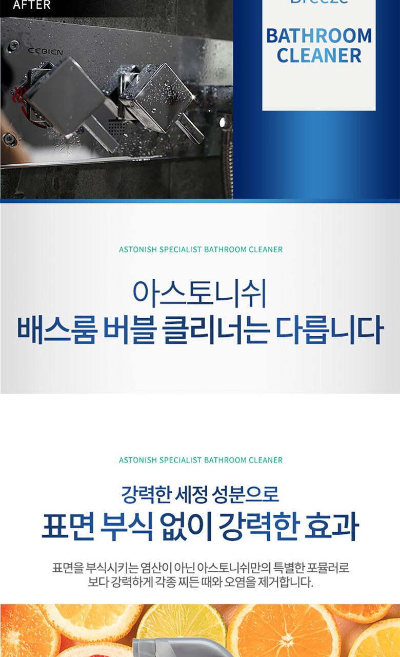 스벅쿠폰 증정 [아스토니쉬] 배스룸 클리너 욕실 청소 세제 세정제 750ml