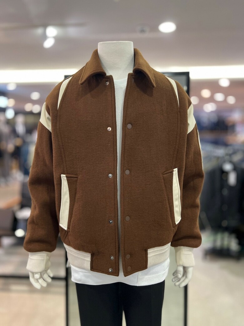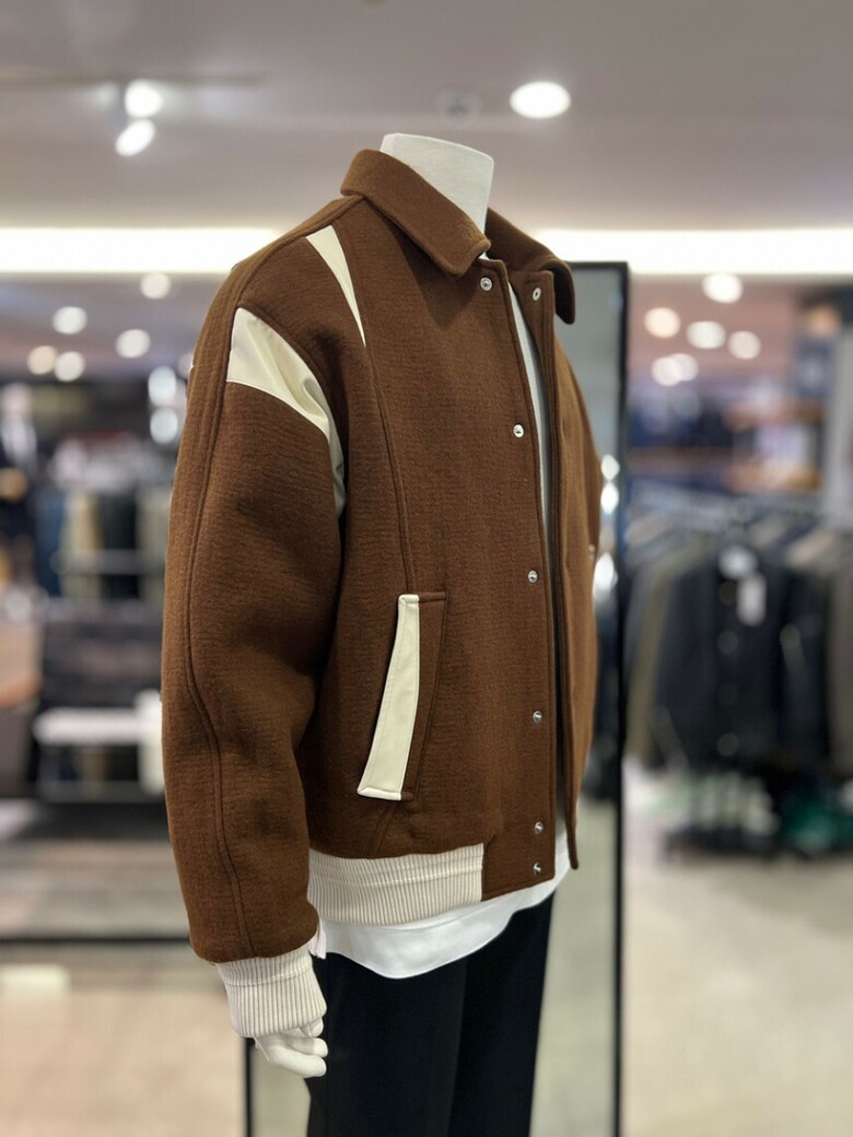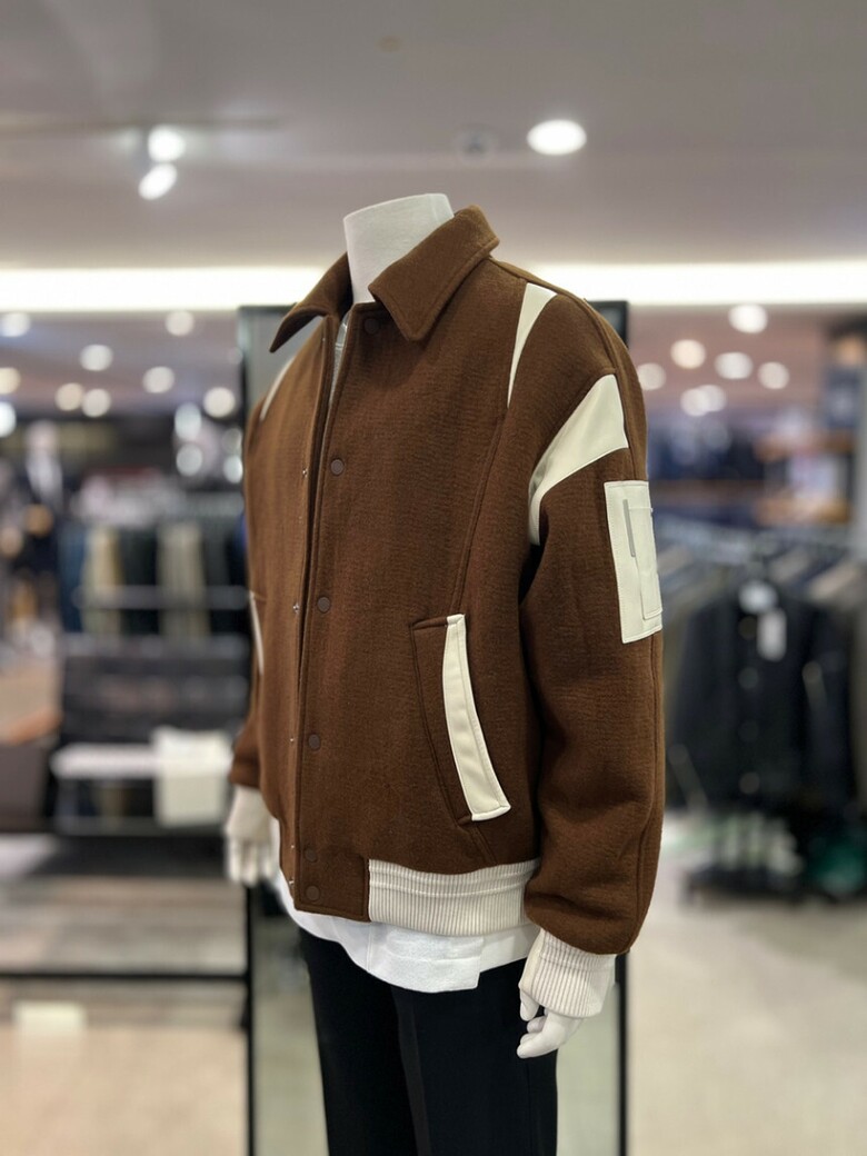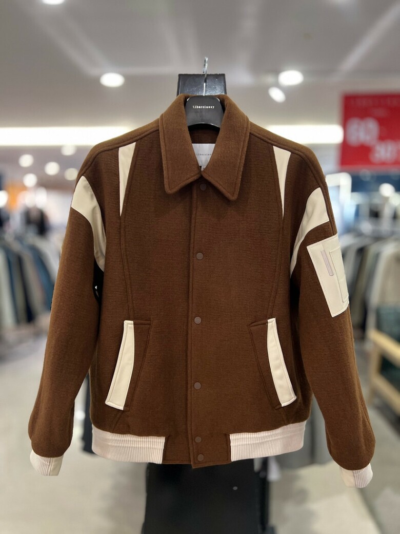 리버클래시 브라운 라인 배색 바시티 오버핏 점퍼 LJW22224