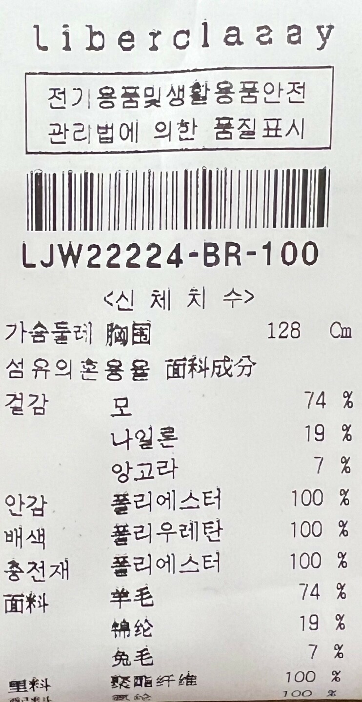 | 1. 제품 소재 (섬유의 조성 또는 혼용률을 백분율로 표시, 기능성인 경우 성적서 또는 허가서) | 겉감:면 62%, 아크릴 38% |