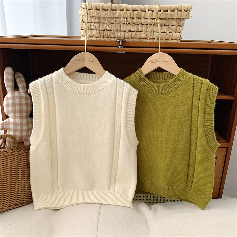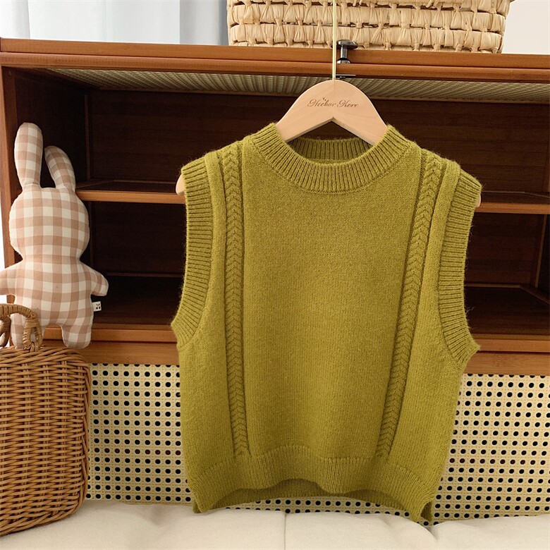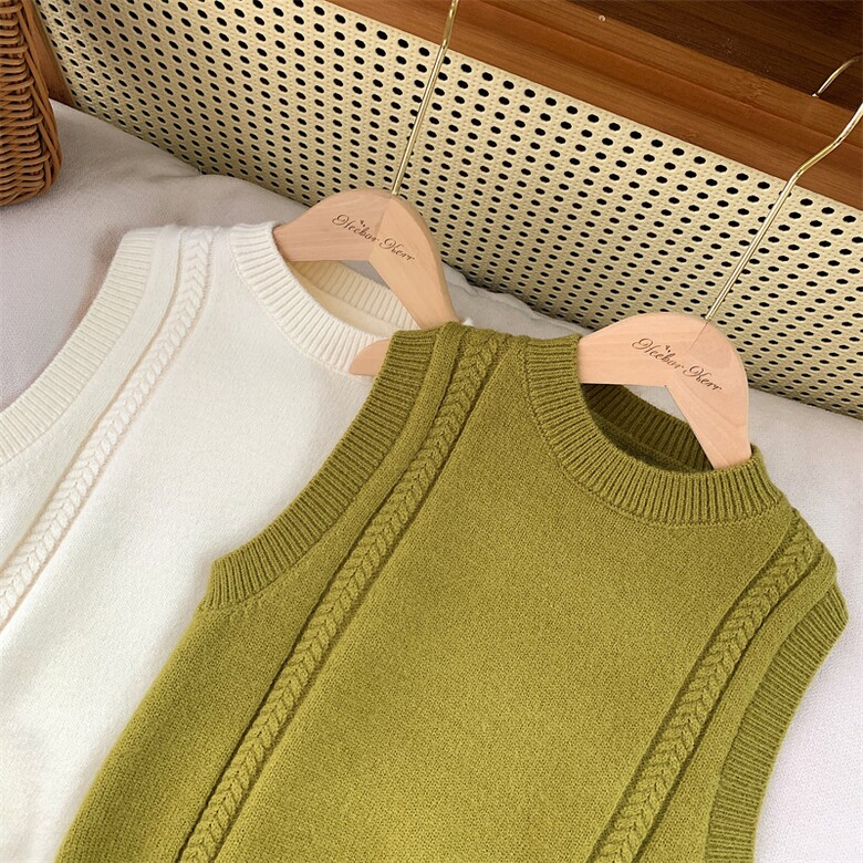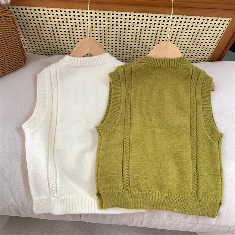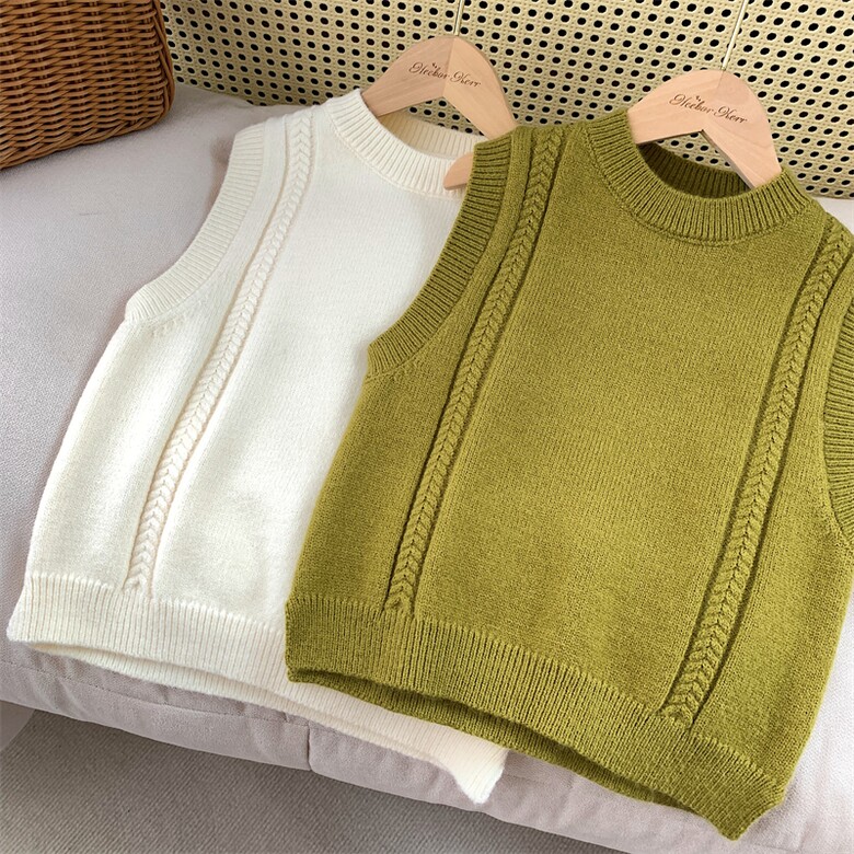 [예약발송] 무지 리프 라인 니트 조끼 R9912