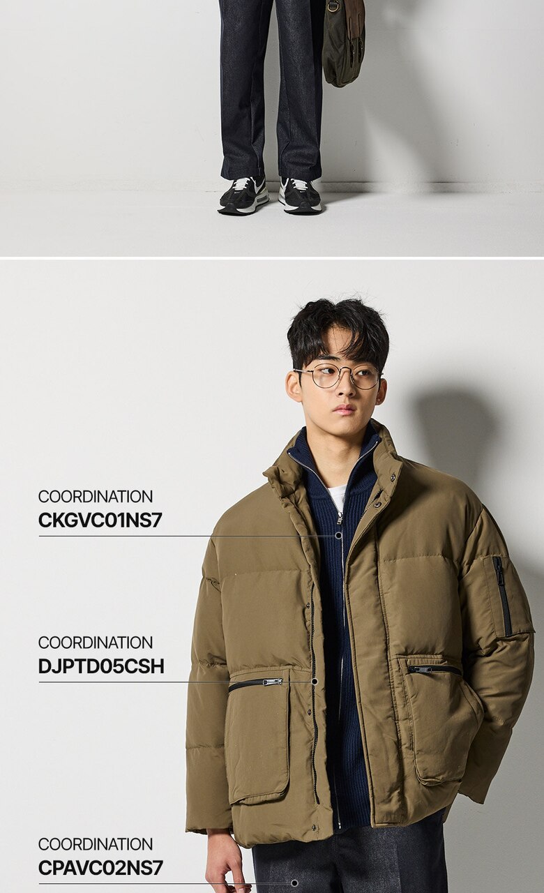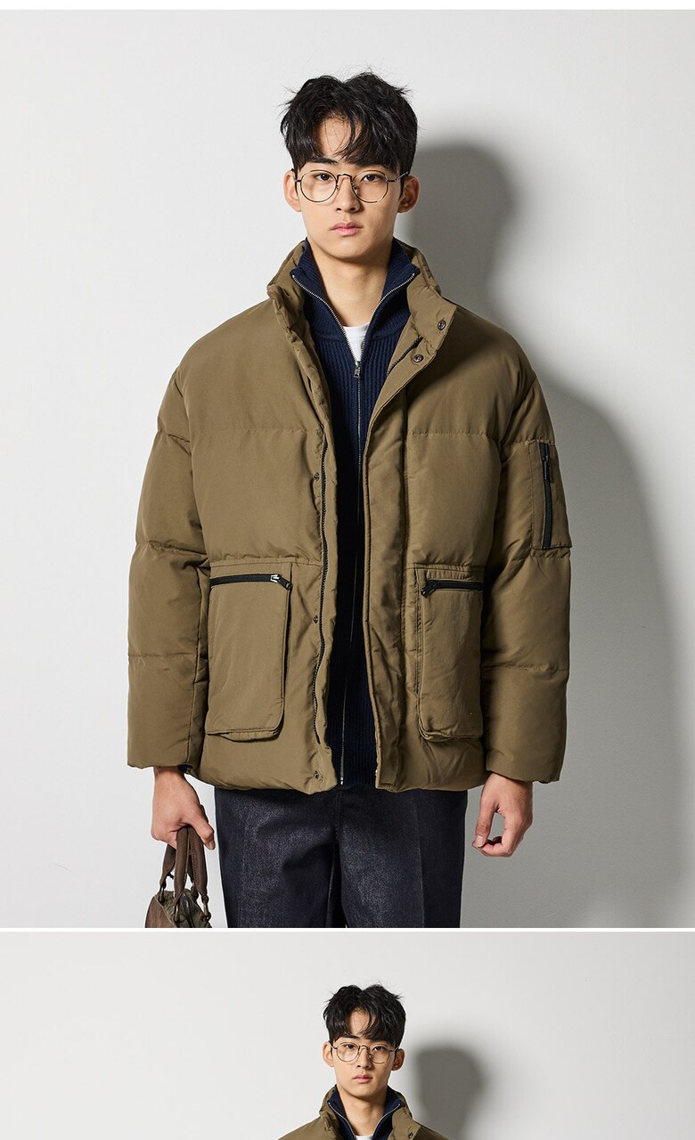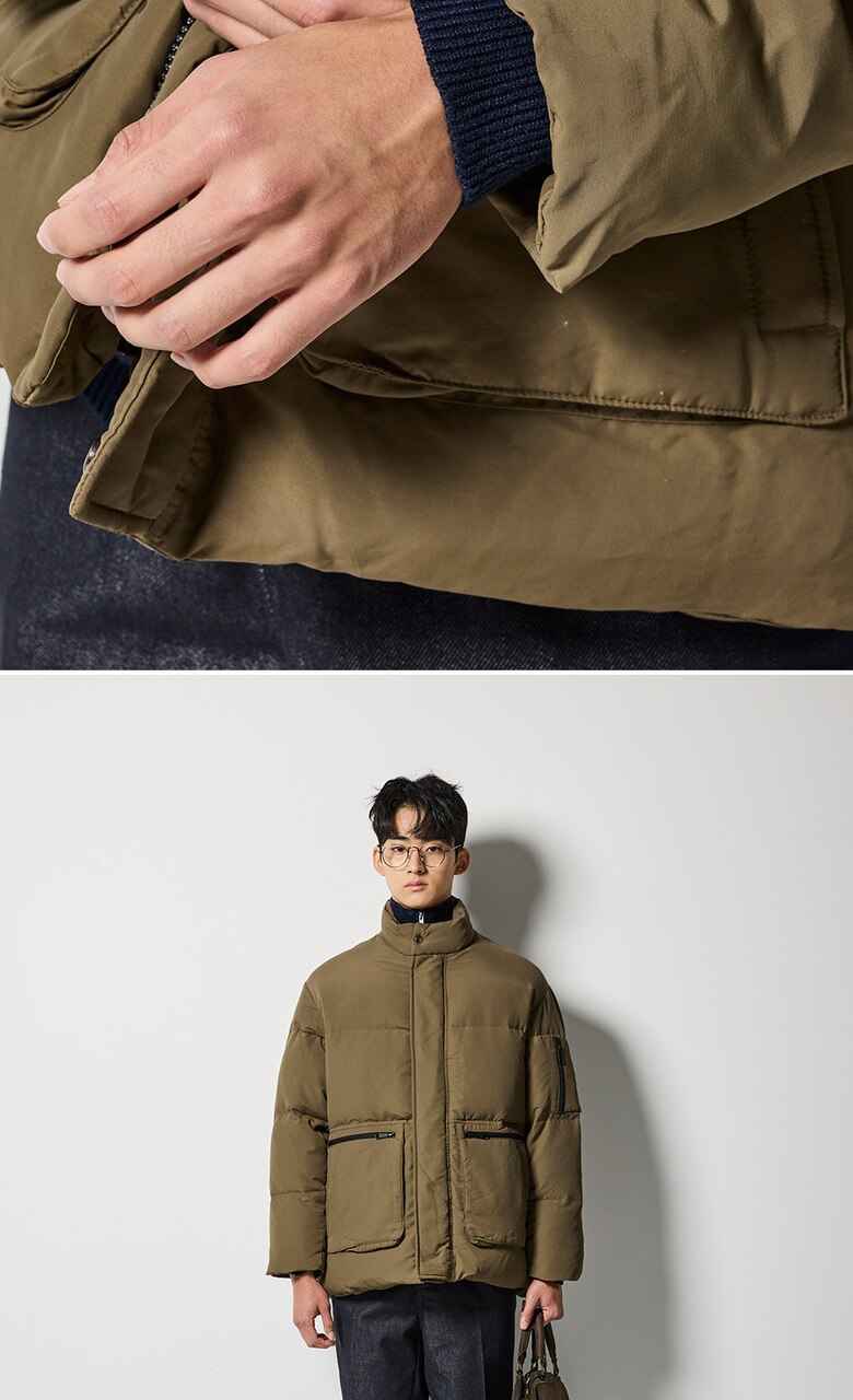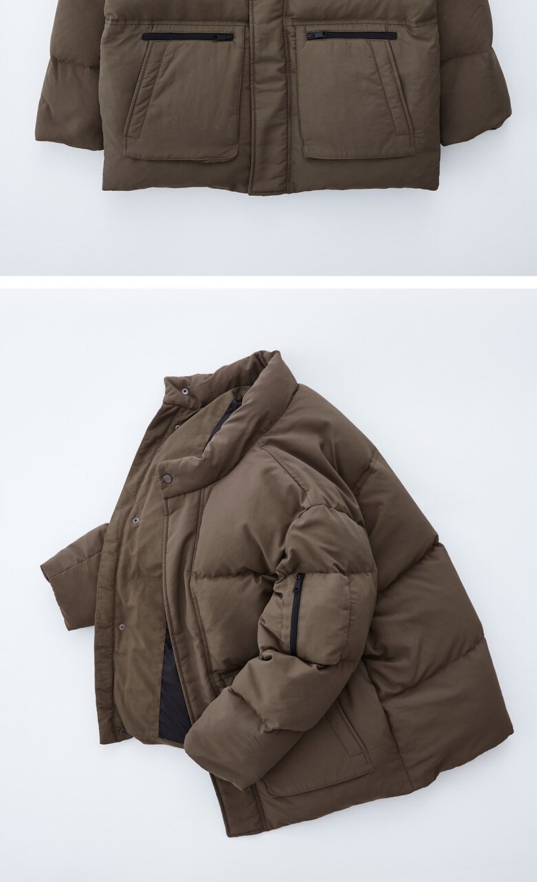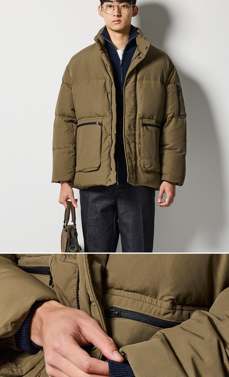 아웃포켓 숏 다운 패딩 점퍼 (브라운)