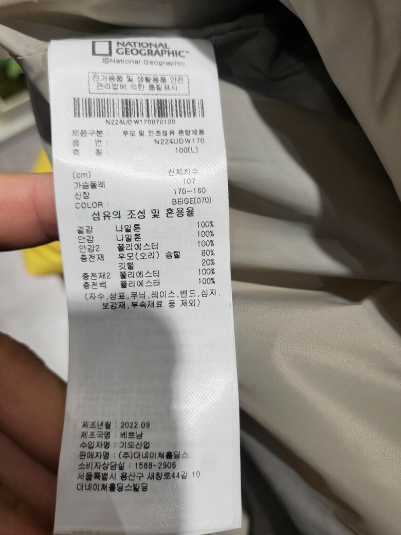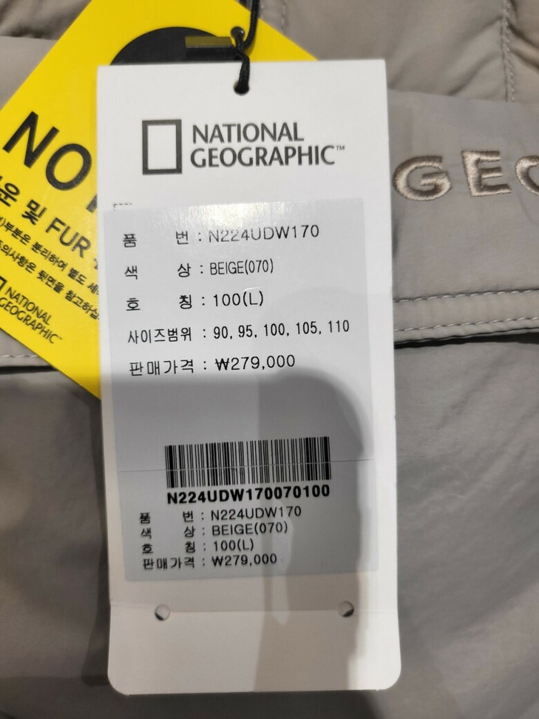 내셔널지오그래픽 정품 인증 및 케어라벨 TAG