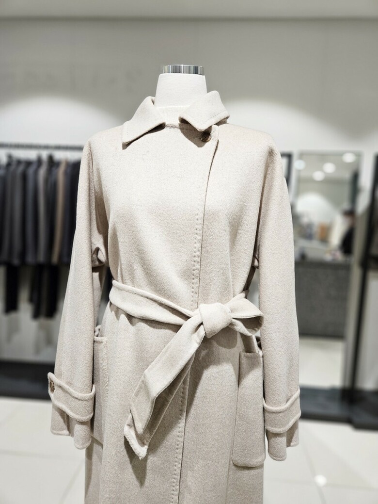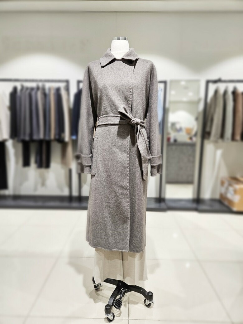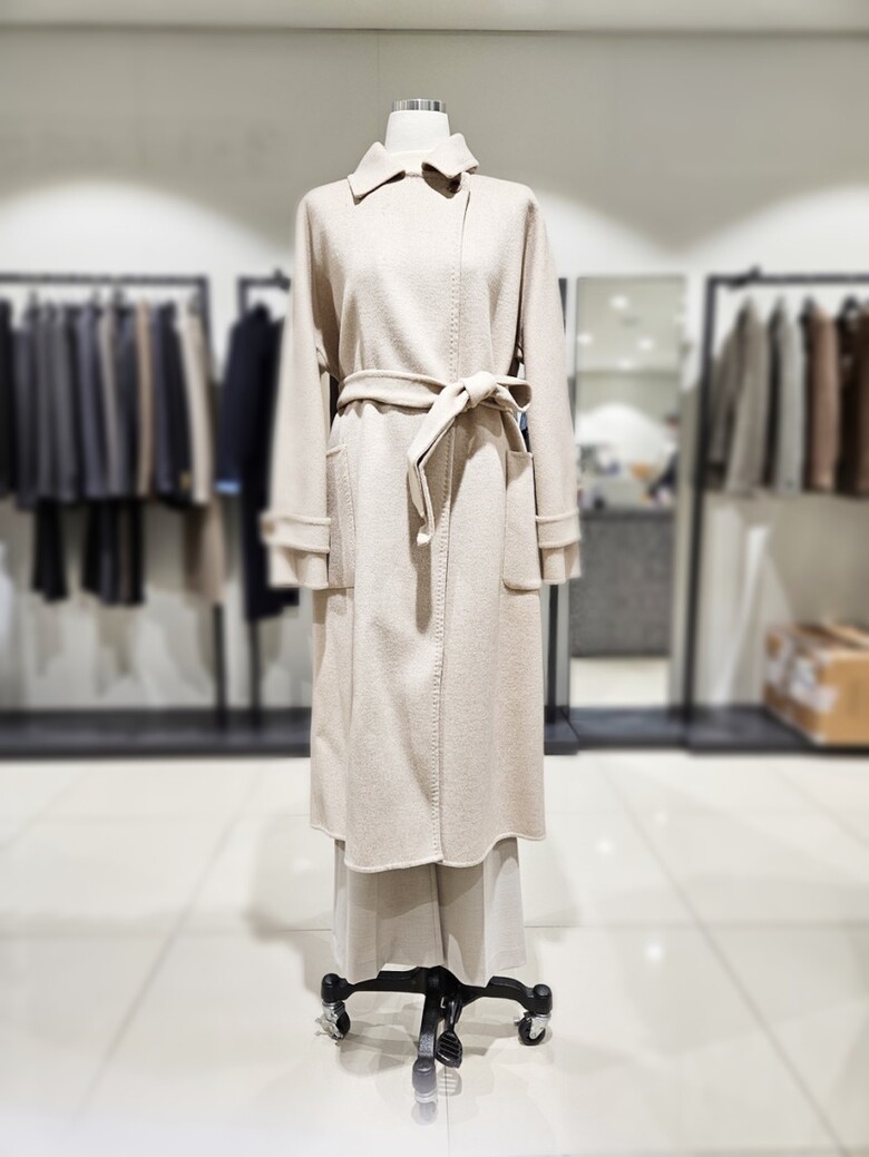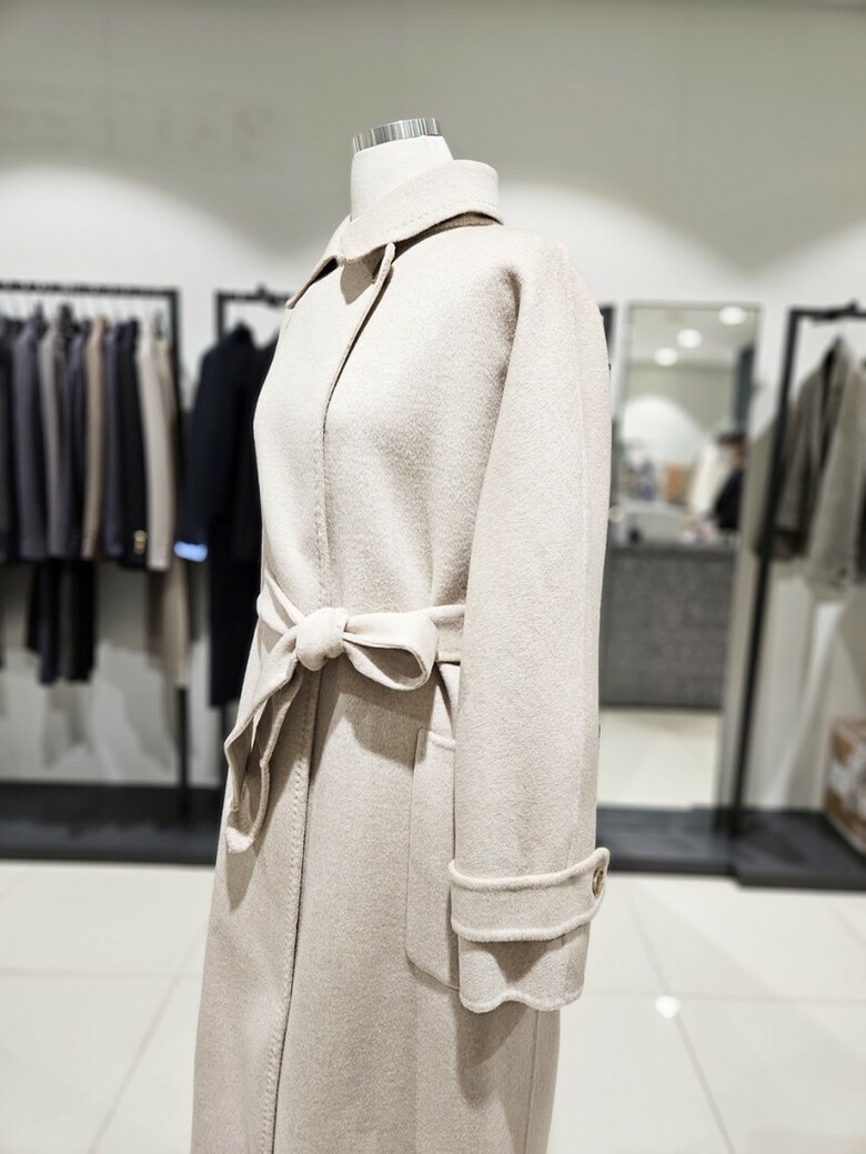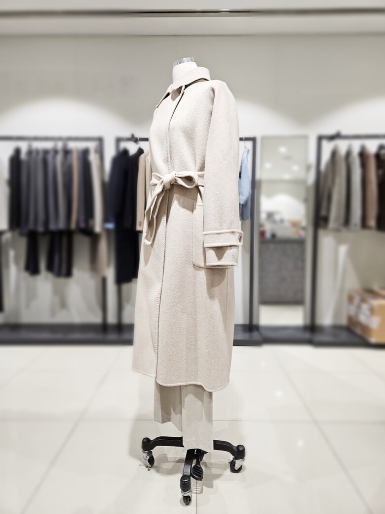 같은 소재의 벨트를 함께 구성하여 슬림한 허리 라인을 강조한 스타일을 연출할 수 있습니다