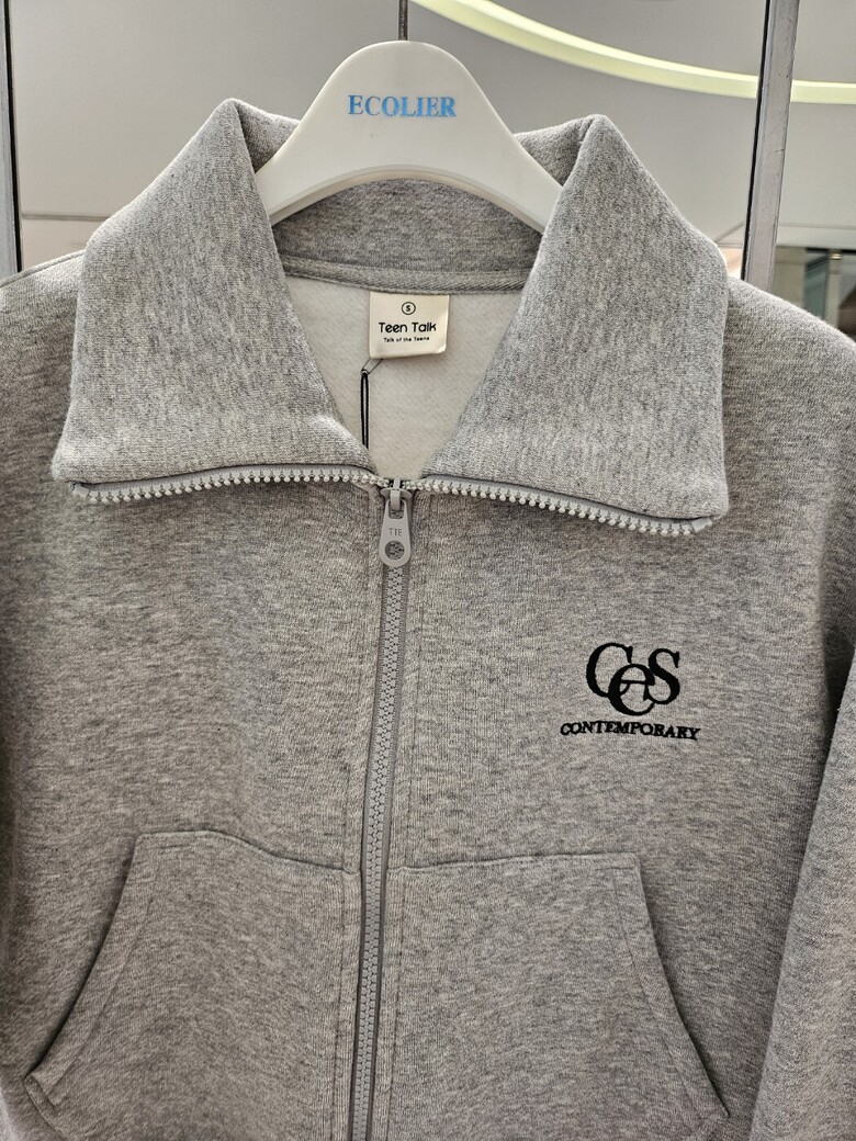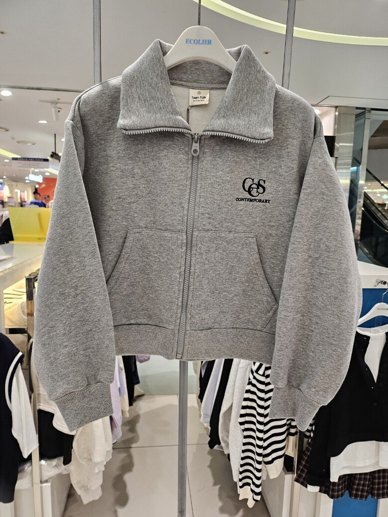 [에꼴리에]23RT181 GY하이넥 기모 크롭 집압점퍼