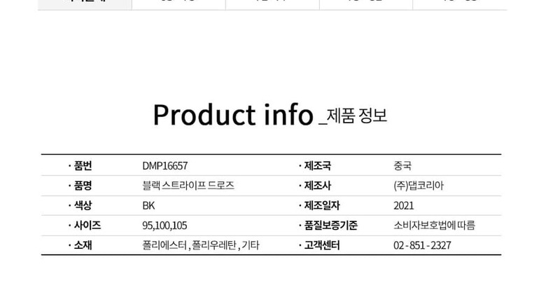 1. 제품 소재 (섬유의 조성 또는 혼용률을 백분율로 표시, 기능성인 경우 성적서 또는 허가서) | 상세페이지참조 |