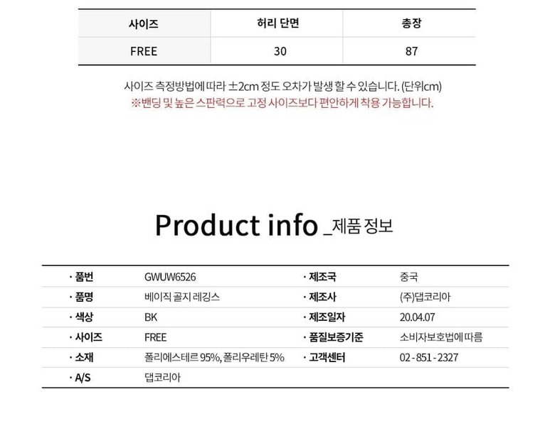 [댑] 골지 베이직 레깅스 BK_GWUW6526