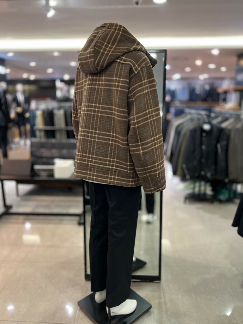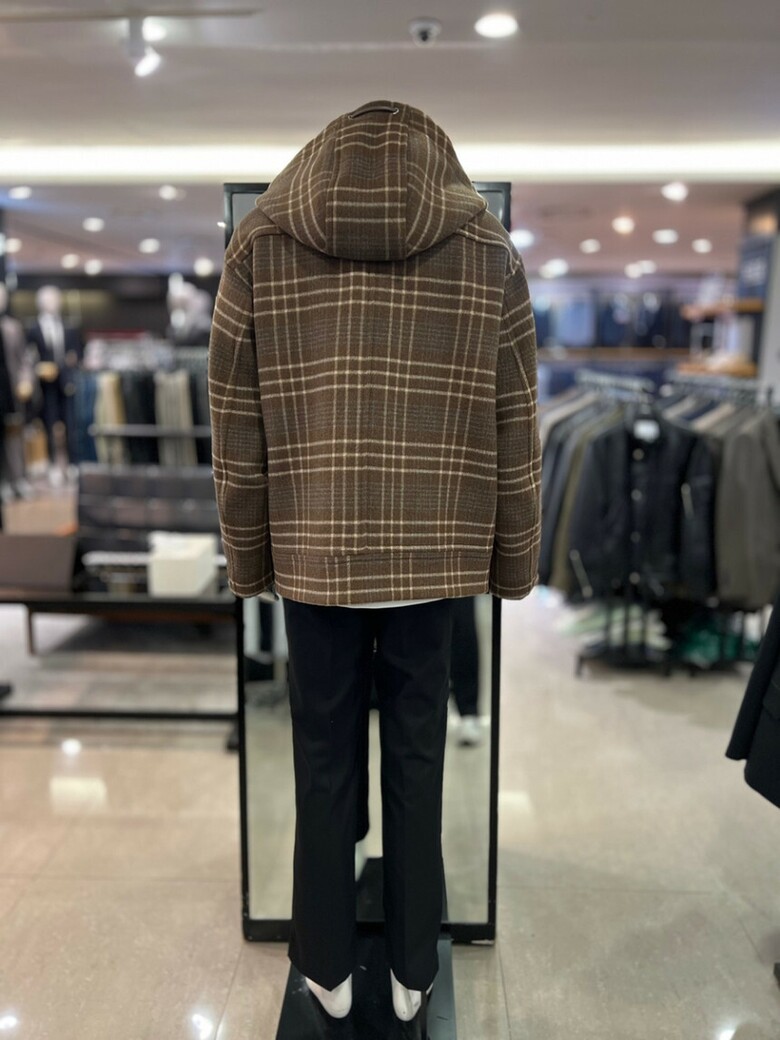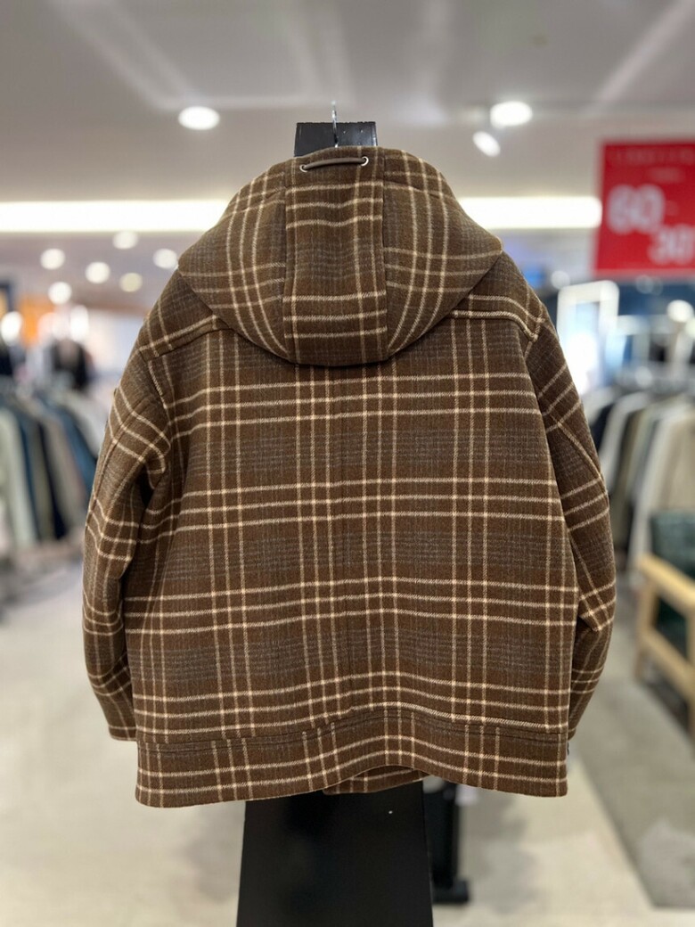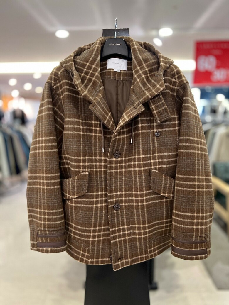 리버클래시[차운우 PICK] 브라운 오버핏 체크 후드 코트 LJW21211