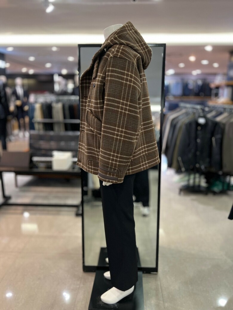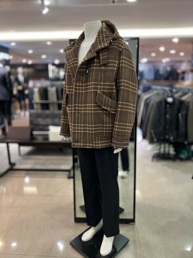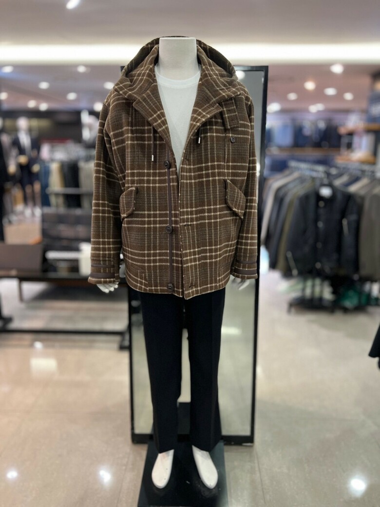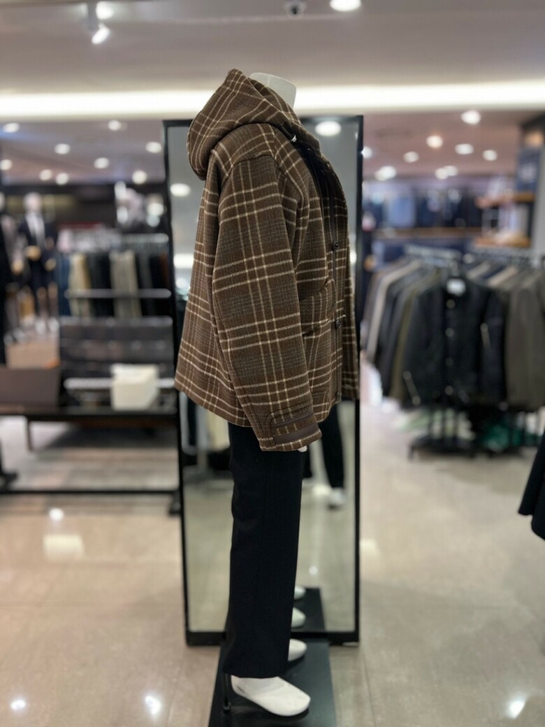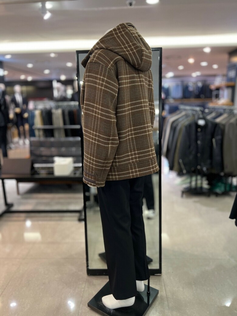 리버클래시[차운우 PICK] 브라운 오버핏 체크 후드 코트 LJW21211