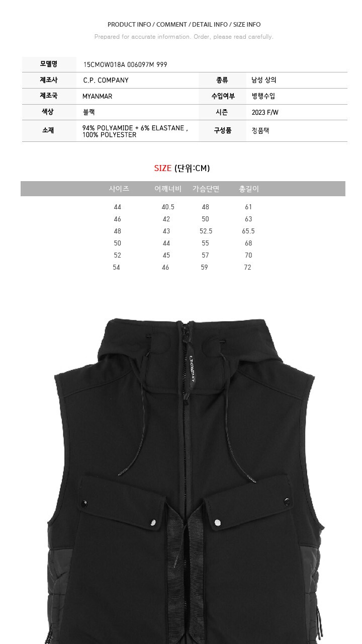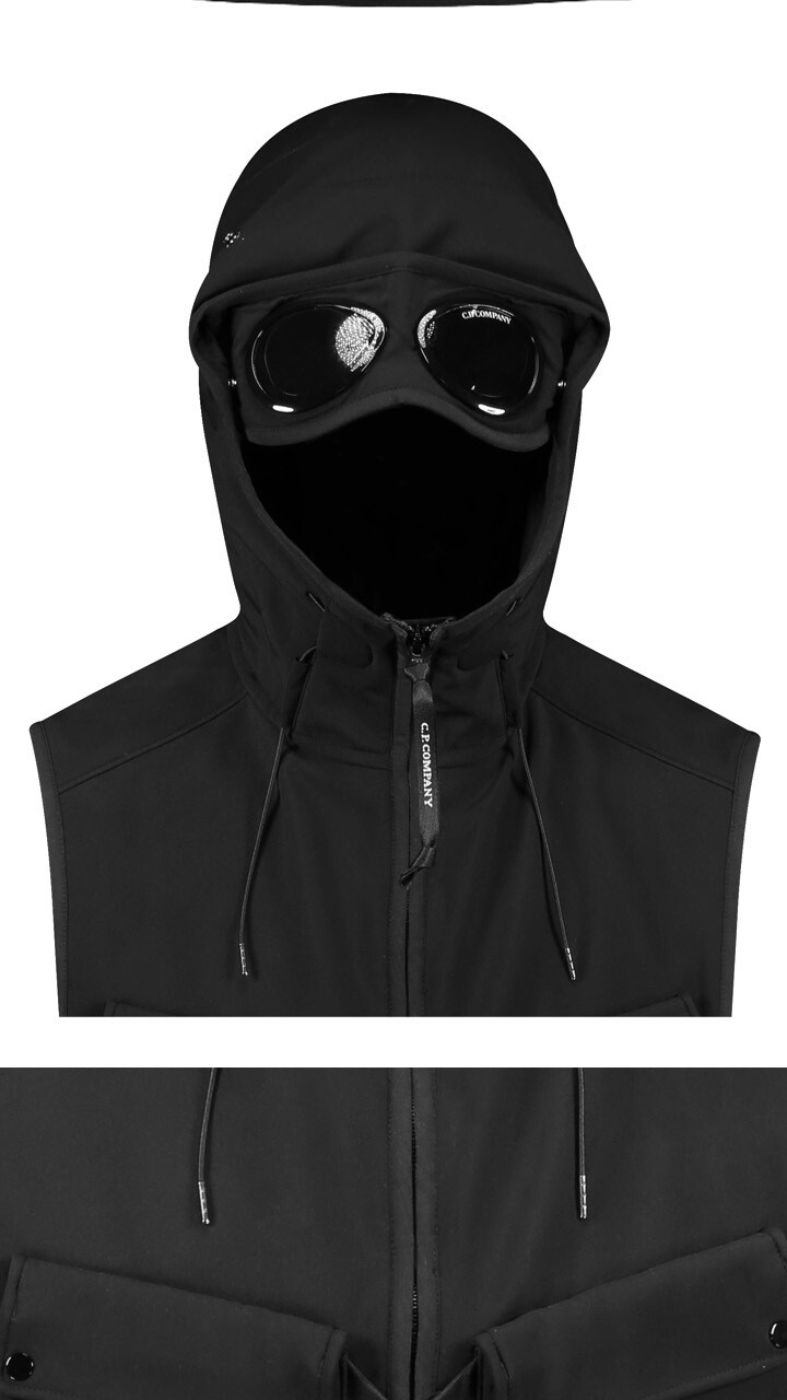 CP 23FW 고글 후드 쉘 패딩 조끼 블랙 15CMOW018A 006097M 999