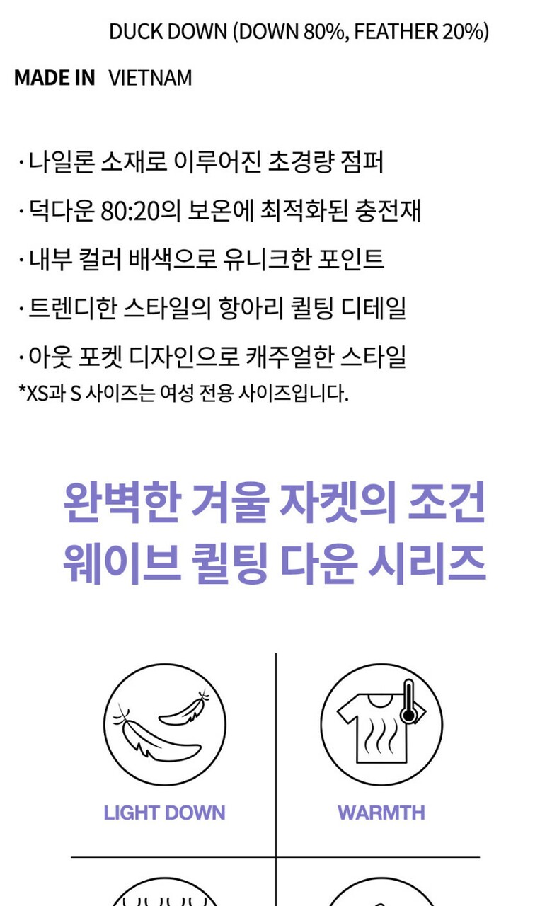 웨이브 퀼팅 라이트 다운 점퍼