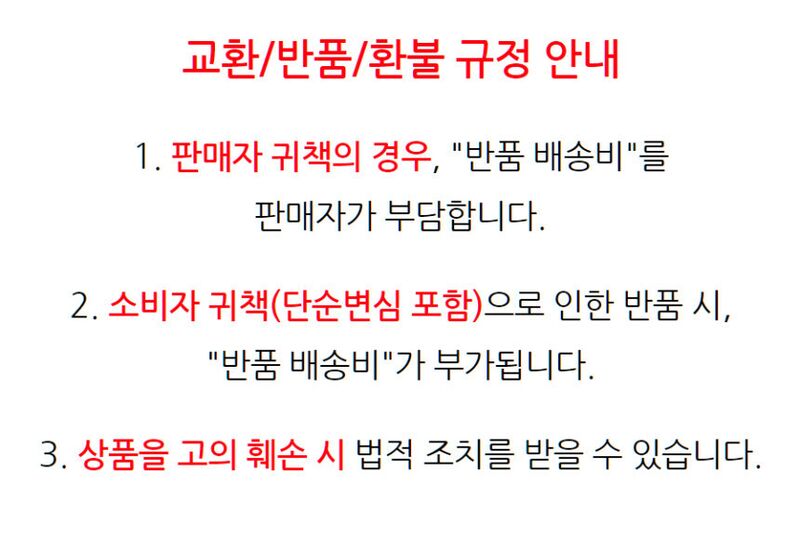 상품불량에 의한 반품, A/S, 품질보증 및 피해보상 등에 관한 사항은 소비자 분쟁해결기준(공정거래위원회 고시) 구매자가 미성년자인 경우에는 상품 구입시 법정대리인이 동의하지 아니하면 미성년자 본인 또는 법정대리인이 구매취소 할 수 있습니다. |