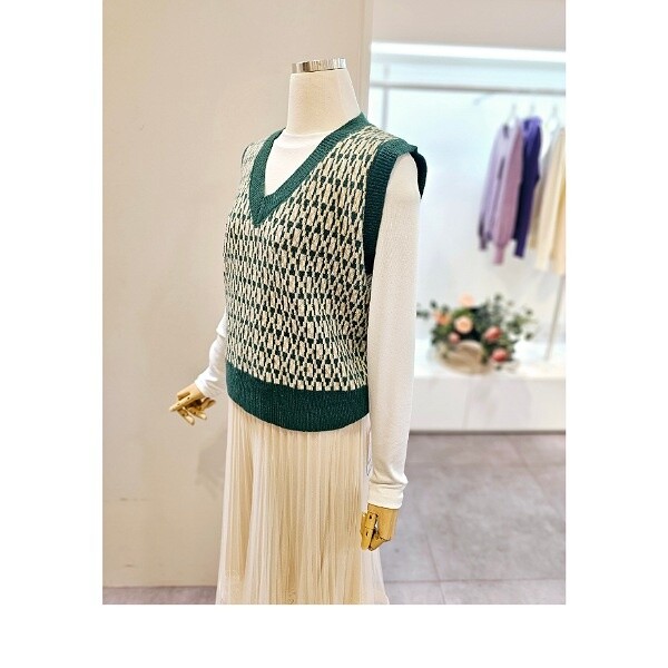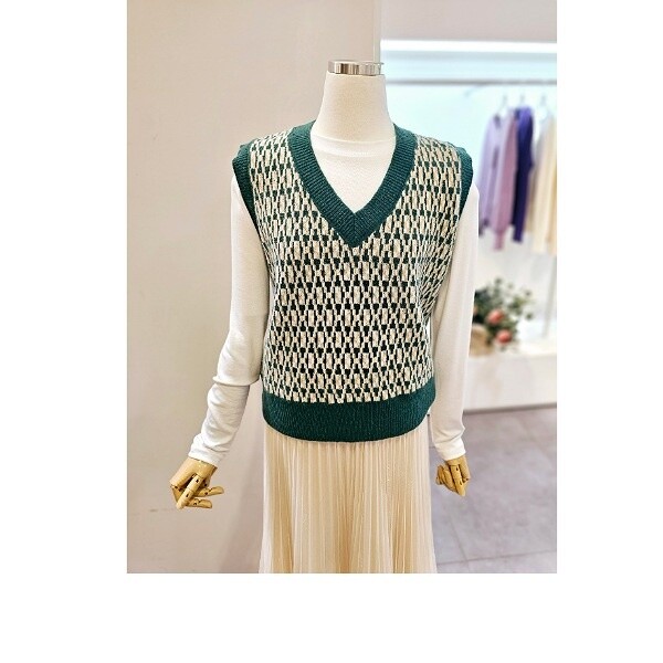 대구백화점SG 클리지 CN8WKV02 브이넥 패턴 니트 조끼