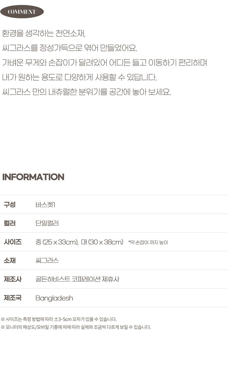 | 1. 품명 | 씨그라스 에코 수납 바스켓 2size |