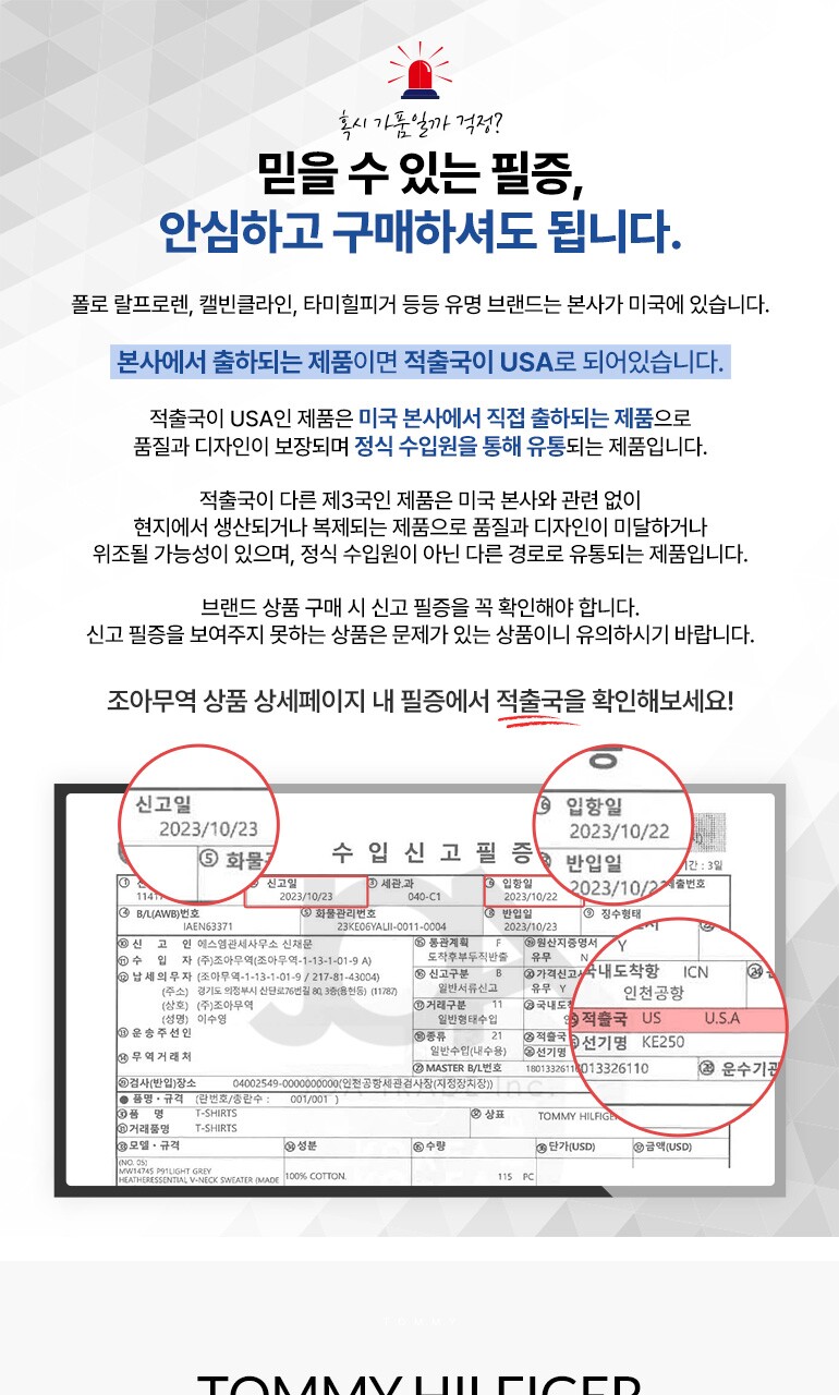 4. 제조사 | Tommy Hilfiger/병행수입 |