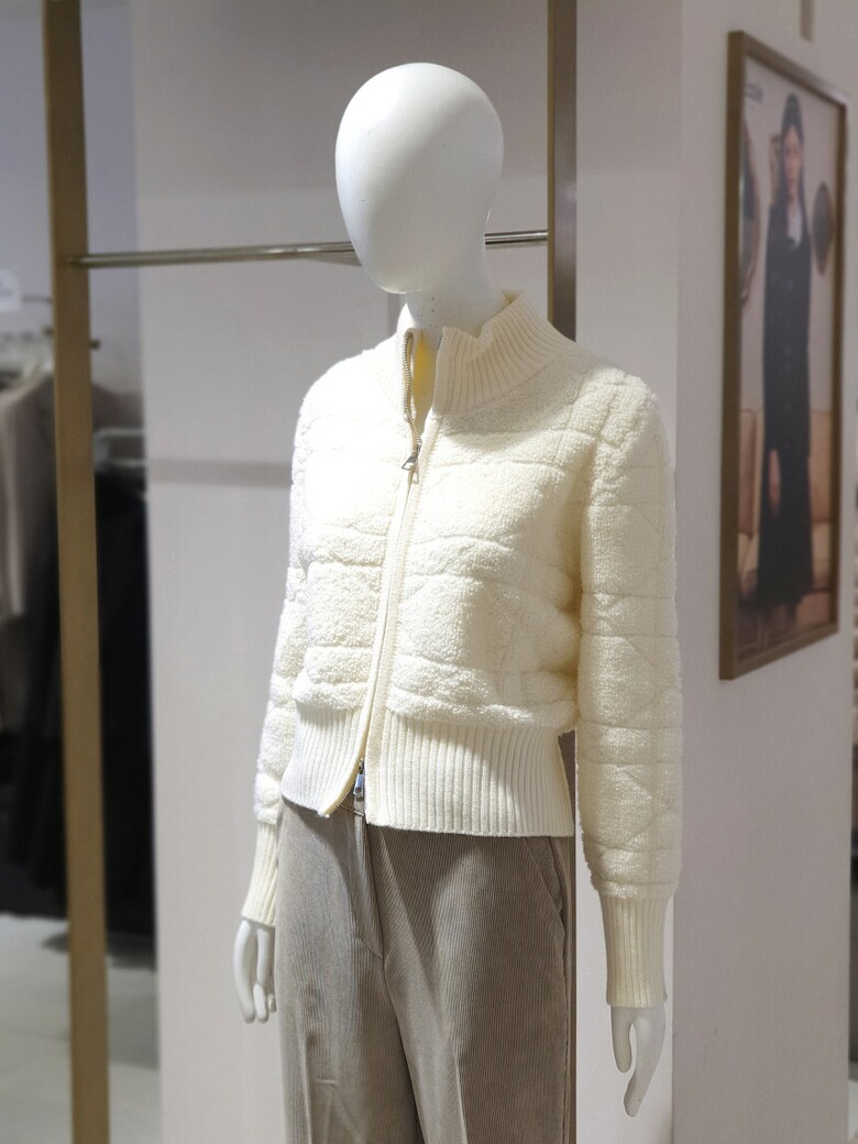 하이넥 칼라 디자인이 네크 포인트가 되는 카디건입니다.