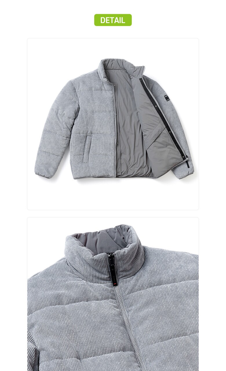 나일론 소재의 외관과 폴리 코듀로이 소재의 외관으로 리버시블이 가능한 유니 패딩젘퍼