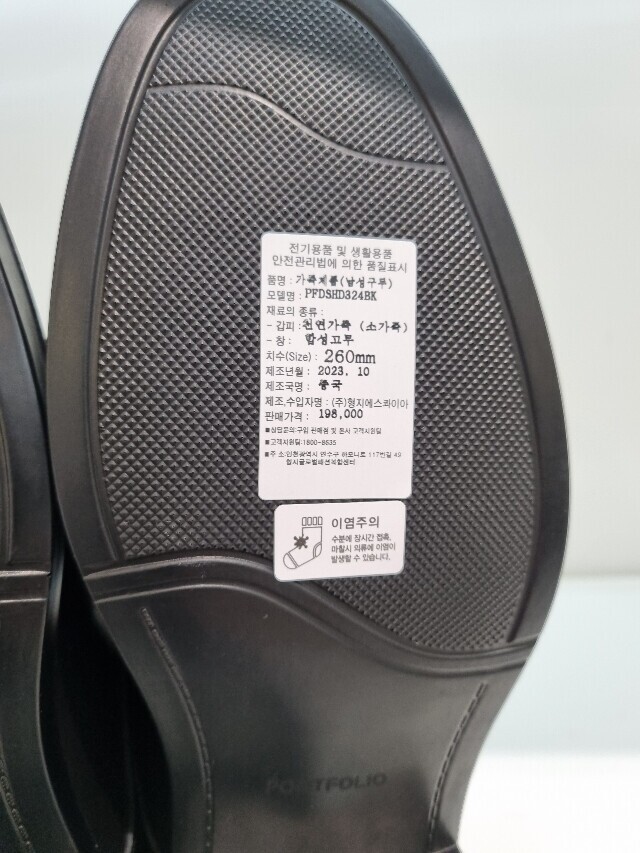 | 1. 제품 소재 (운동화인 경우에는 겉감, 안감을 구분하여 표시) | 소가죽 |