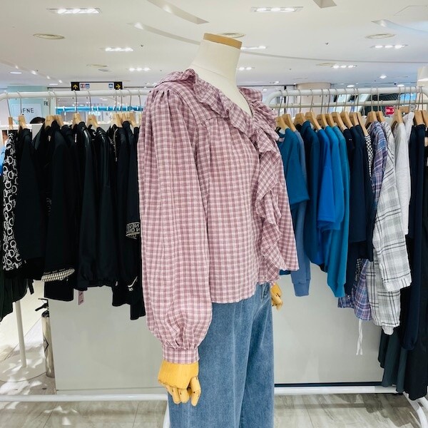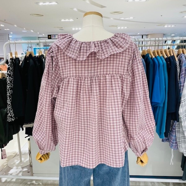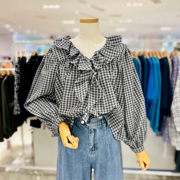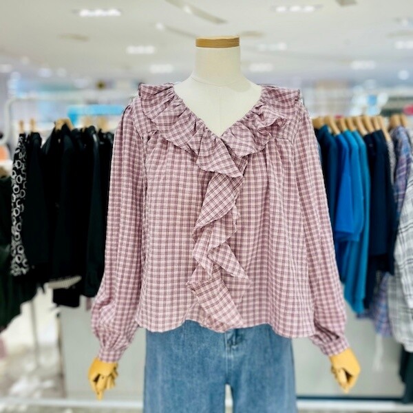 A23SH3317_엘리 체크 프릴 블라우스