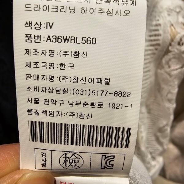 세탁방법 및 취급시 주의사항 : 드라이크리닝