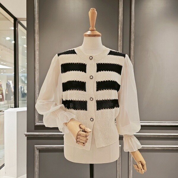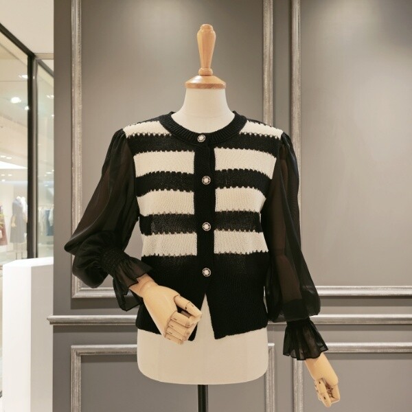 A38KCD520_소매 레이스 스트라이프 가디건