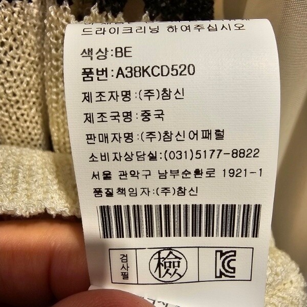제조자 : (주)참신어패럴