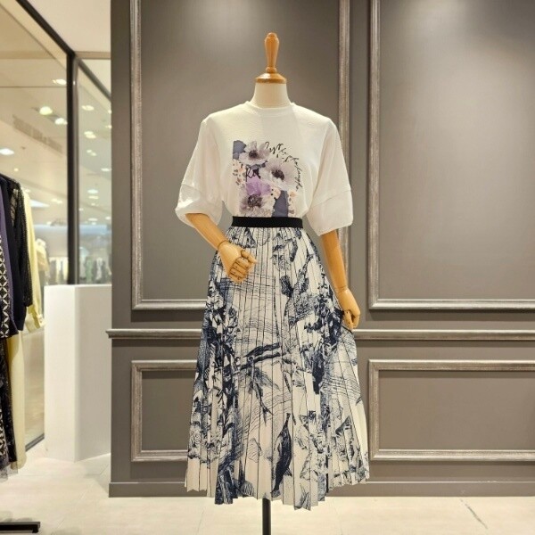 돋보이는 주름스커트입니다?유니크한 프린트 나염 스커트에요