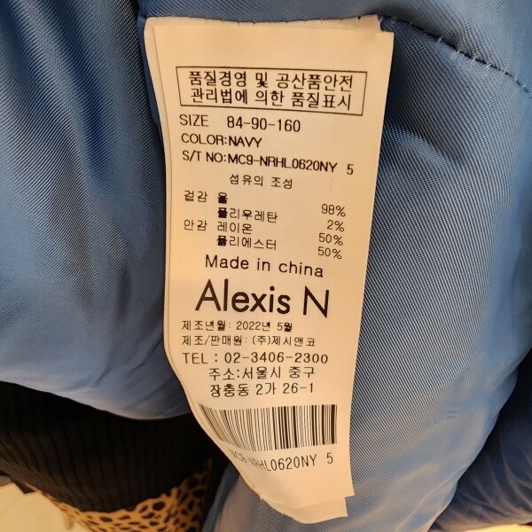 제품소재 : 울98%폴리우레탄2% 안감-레이온50%폴리에스터50%