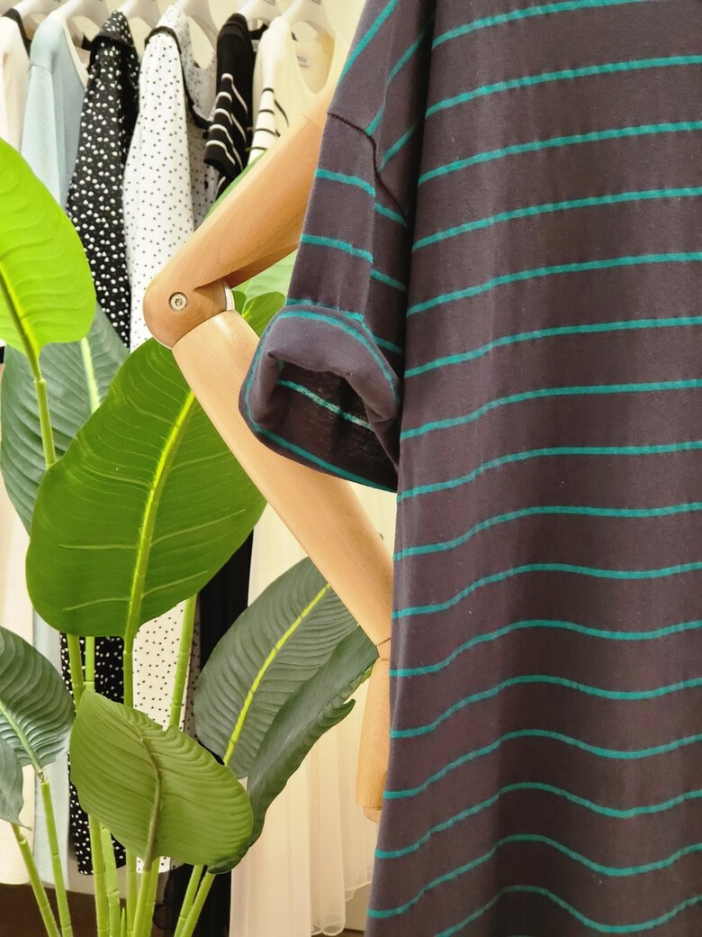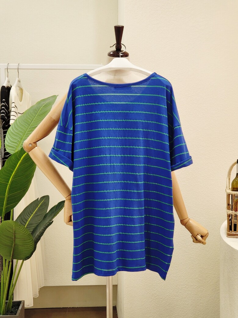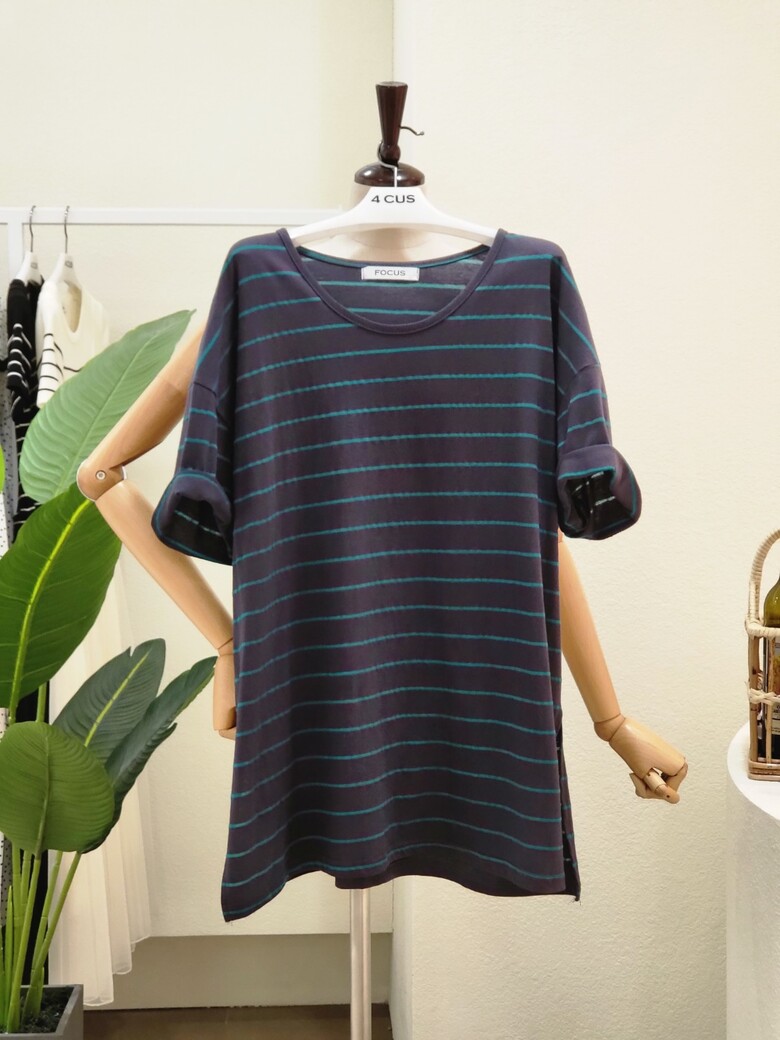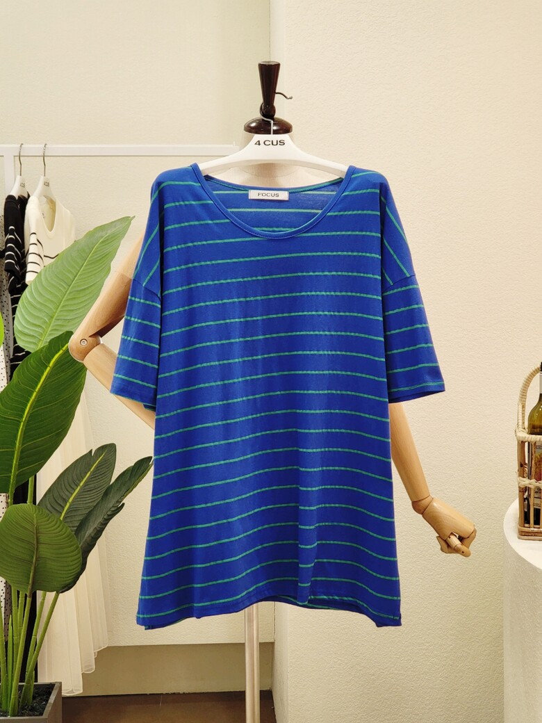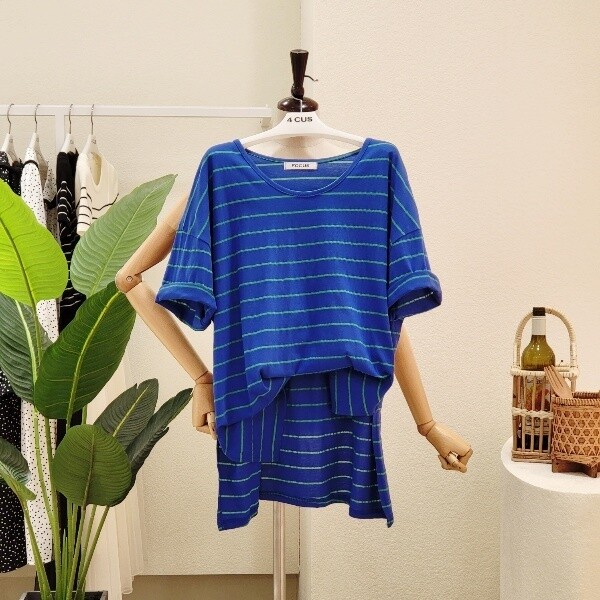 대구백화점SG 포커스 FM3C9TS5398 배색 스트라이프 U넥 박스 티셔츠
