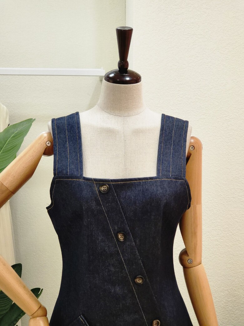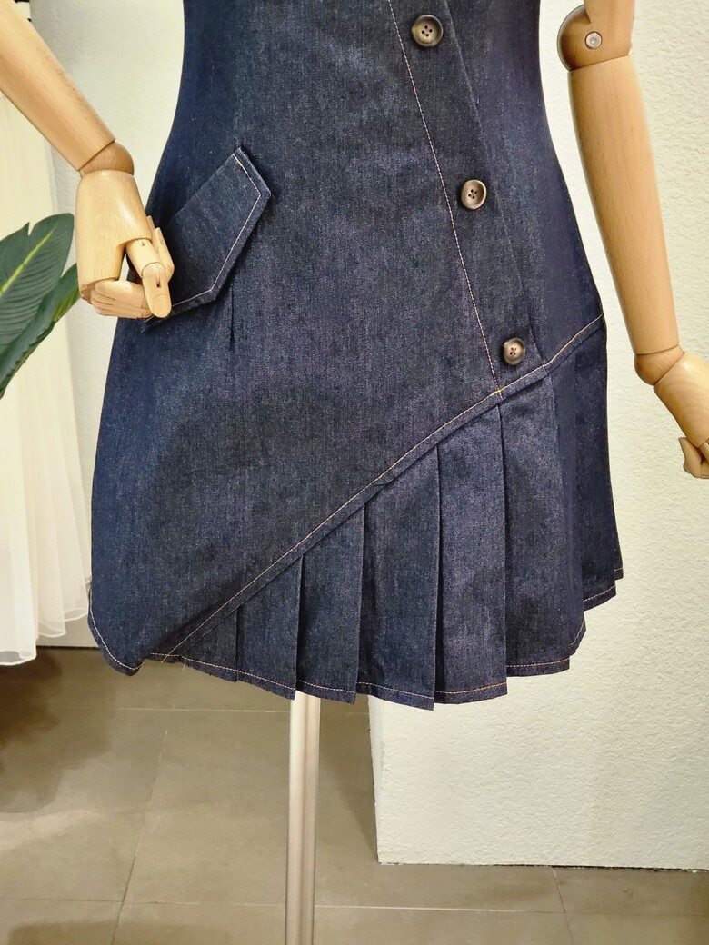 FM3C7OP02699_데님 플리츠 뷔스티에 미니 원피스