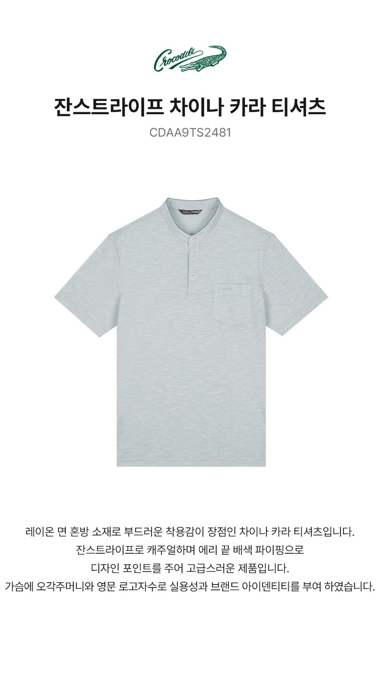 대구백화점SG 크로커다일 CDAA9TS2481 잔스트라이프 차이나 카라 티셔츠