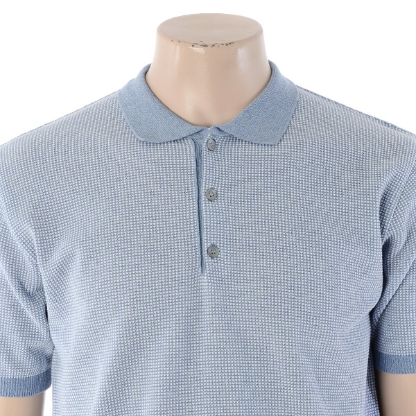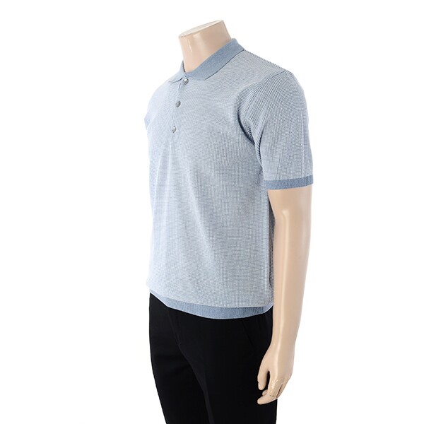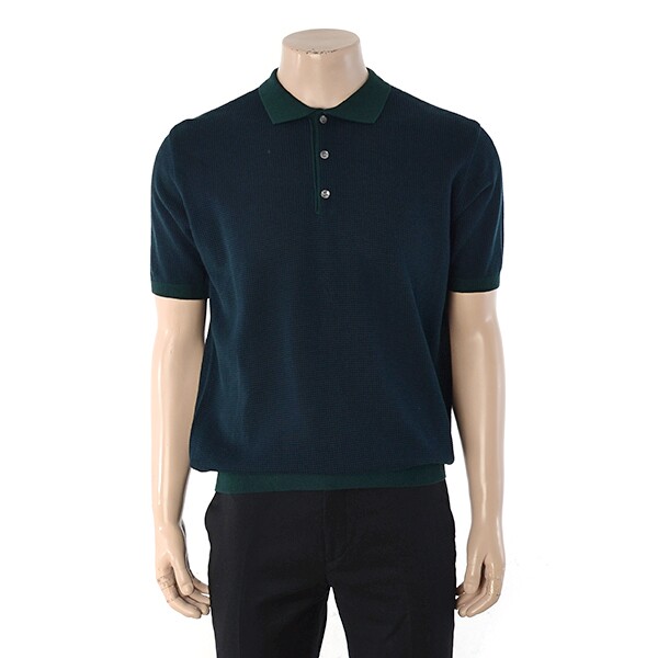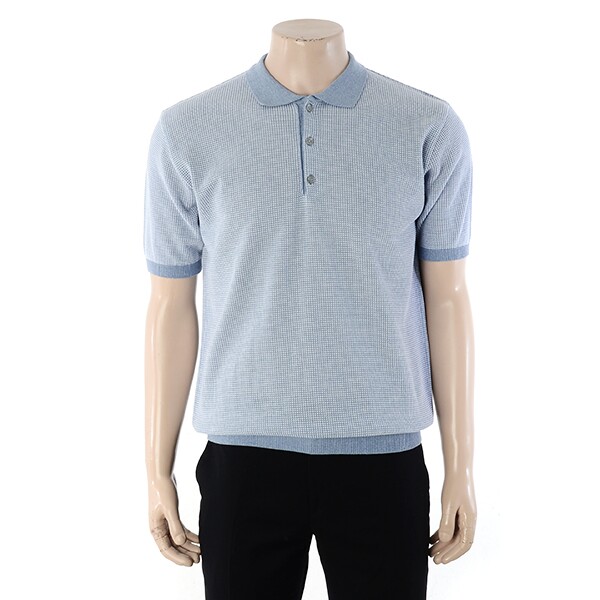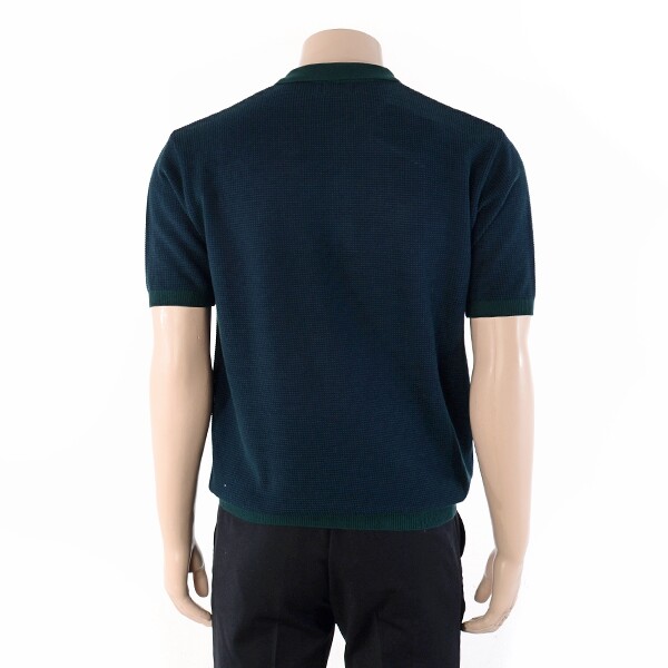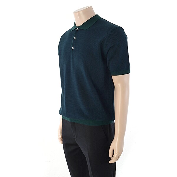 YJ3MCD451_이중조직 투톤 버튼 카라 니트 반소매