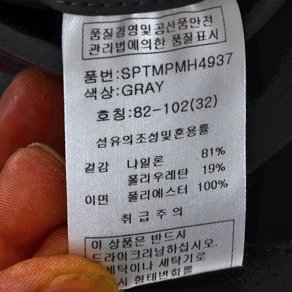 1. 제품 소재 (섬유의 조성 또는 혼용률을 백분율로 표시, 기능성인 경우 성적서 또는 허가서) 나일론81%폴리우레탄19%