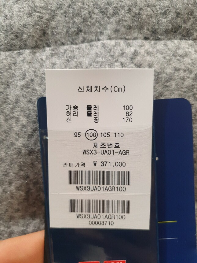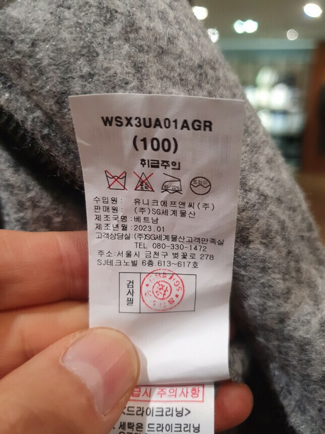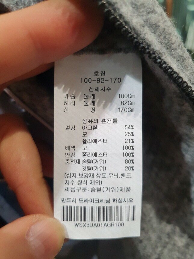 겉감 : 아크릴 54% , 모 25% , 폴리에스터 21%